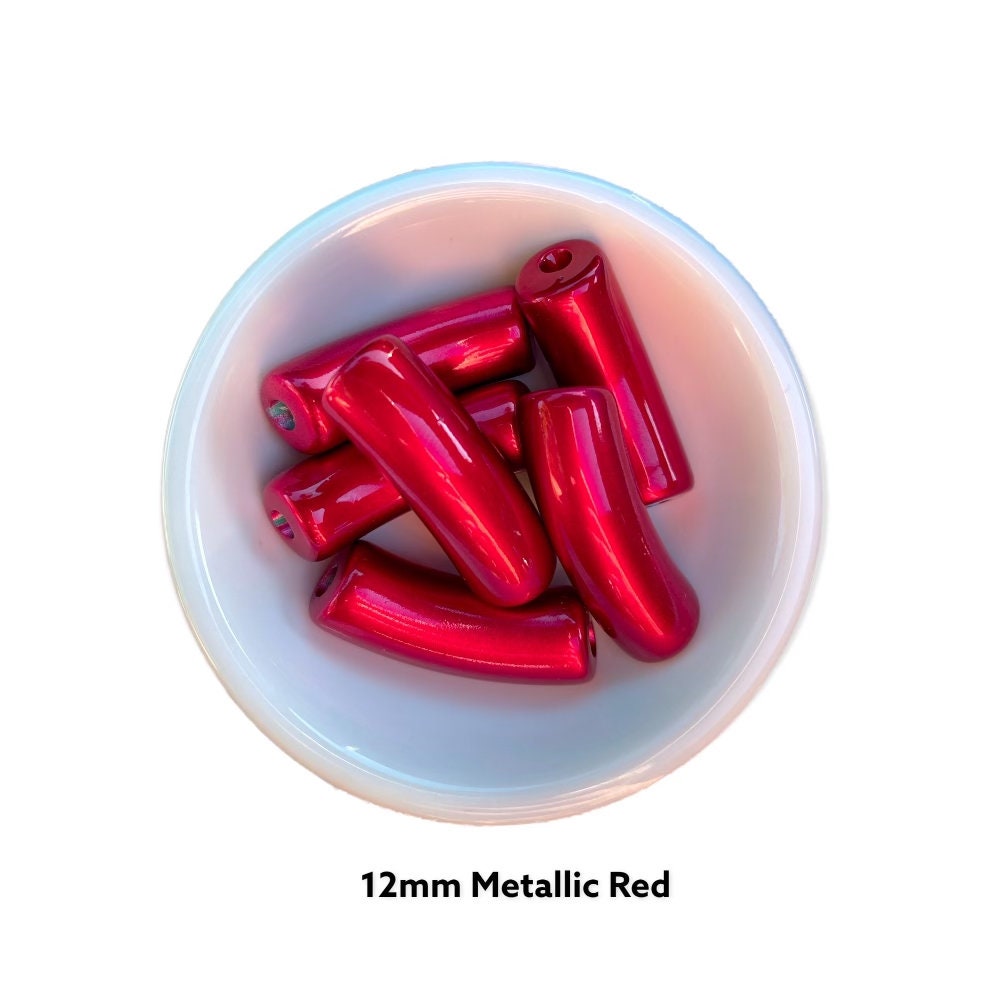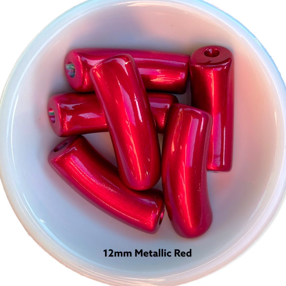 12mm- Holiday Red Metallic Tube Acrylic Beads, Curved Tube Beads, Resin 11 mm x 35mm, Bamboo Bracelet Bangle ACRYLIC TUBE BEAD
