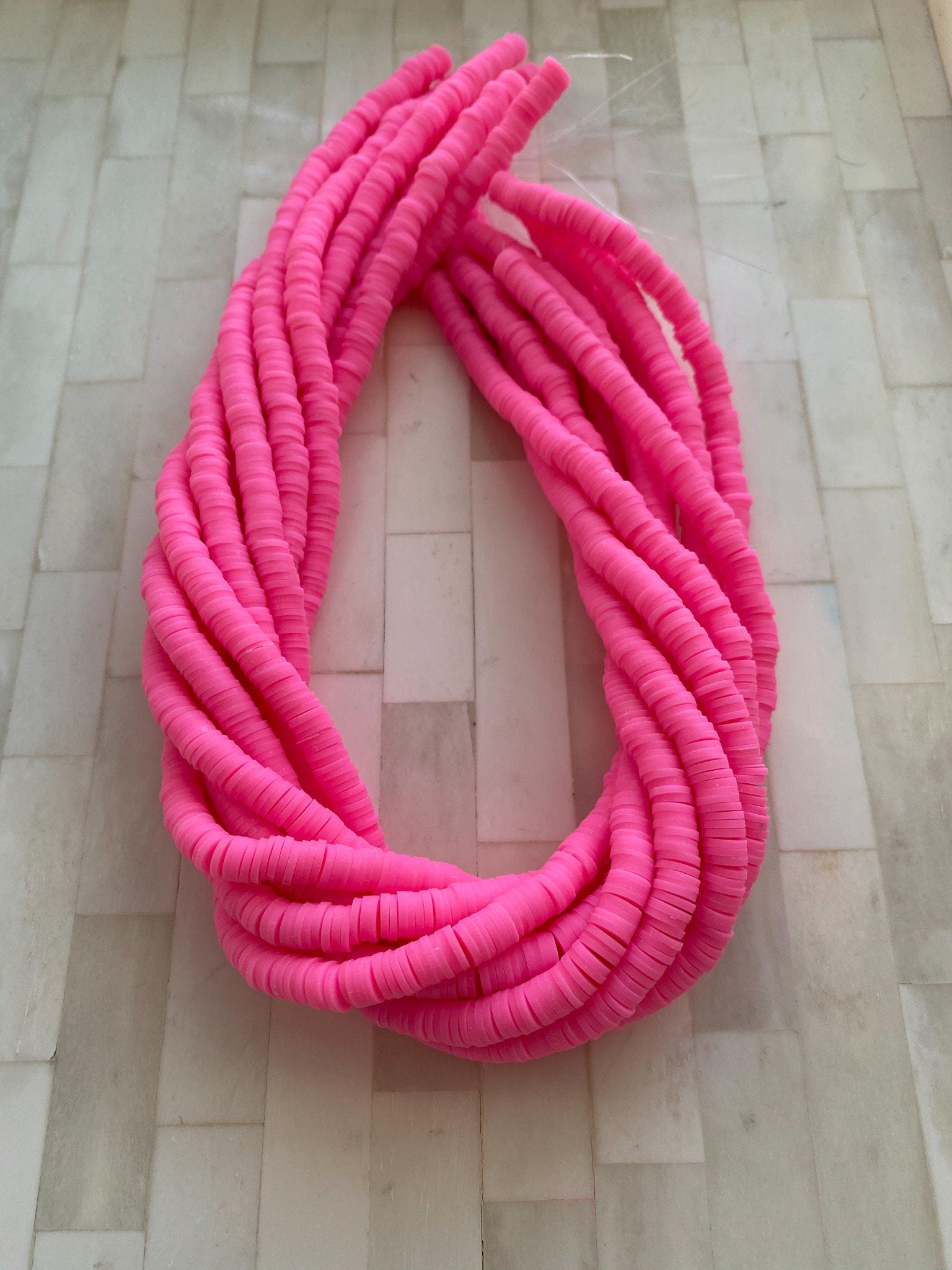 6mm Barbie Pink ,bright summer pink , Neon Vinyl Heishi Beads Vinyl Beads Polymer Clay African Disc Beads, breast cancer Heishi DIY Jewelry