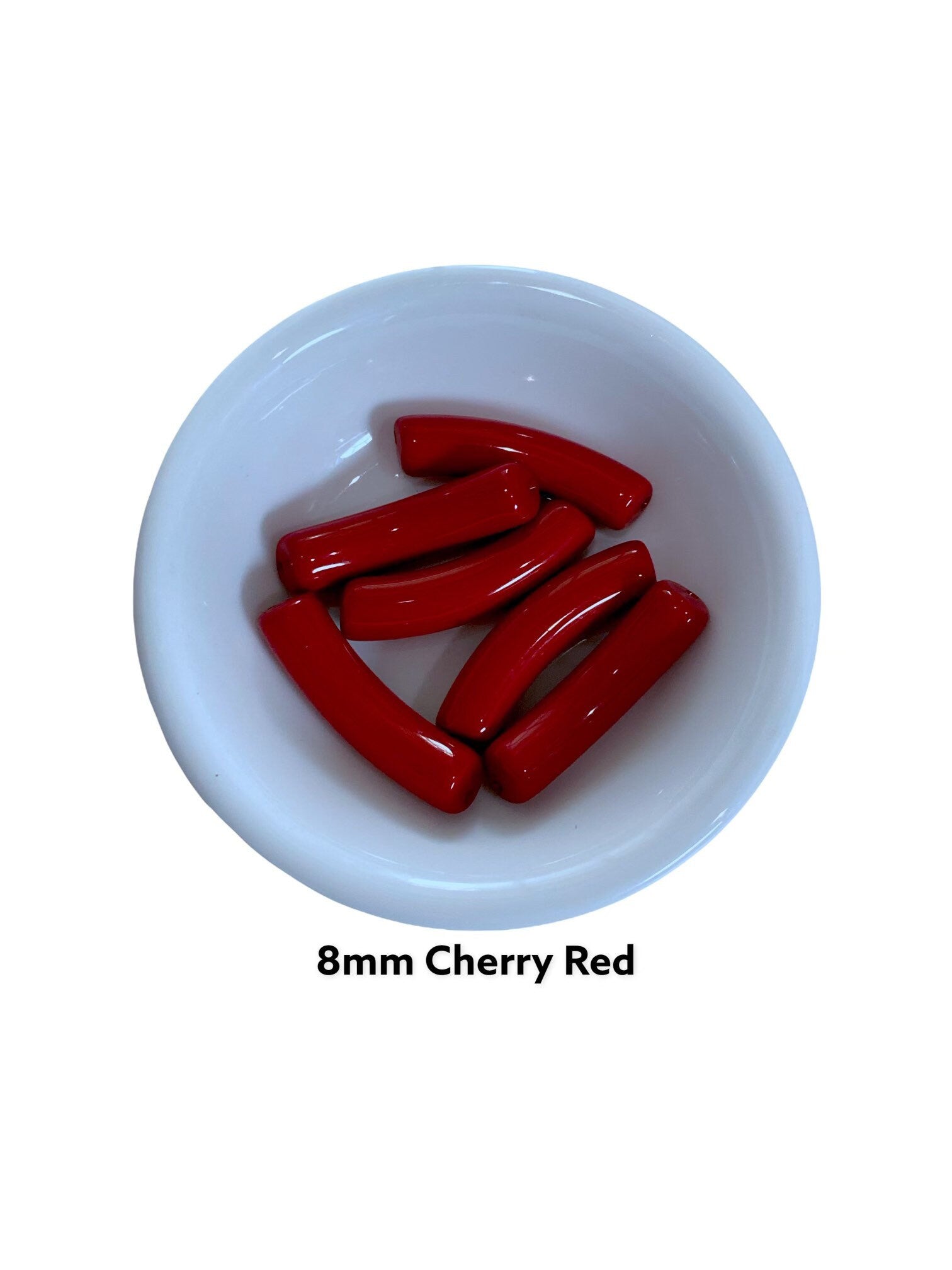 8mm - Cherry Red - Christmas Holiday Small Acrylic Tube Beads, Curved Tube Beads, Resin, Bamboo Bracelet Bangle Acrylic Tube