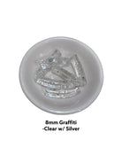 8mm Clear Graffiti- Silver Graffiti Paint Splatter Beads - holiday Acrylic Tube Beads, Curved Tube Bead, Resin Lucite Bracelet