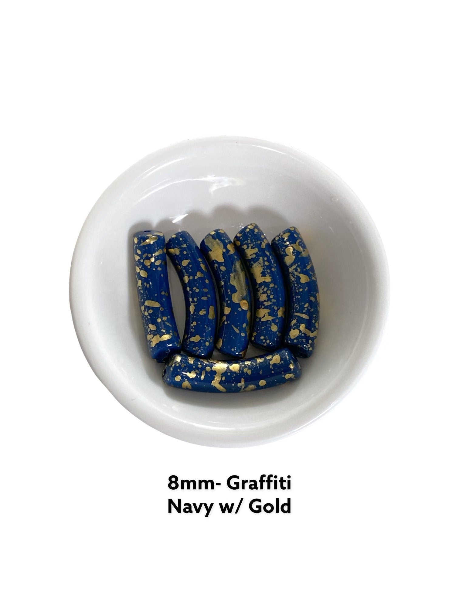 8mm Navy Graffiti- Navy & Gold Holiday Graffiti Paint Splatter Beads - 6mm ( 8 mm) Acrylic Tube Beads, Curved Tube Bead, Resin Bracelet