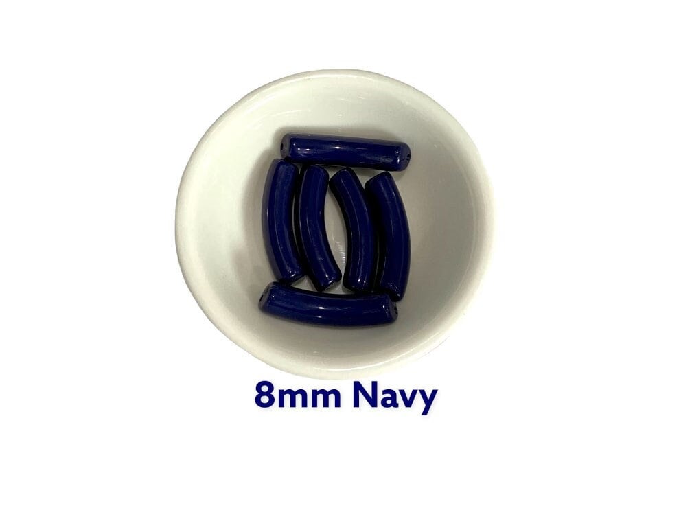 8mm -True Navy- Small Acrylic Tube Beads, BlushCurved Tube Beads, Resin, Bamboo Bracelet Bangle Acrylic Tube