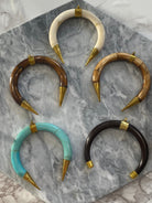 Please not Black as a rounded brass tip on endings. The tan/ brown color varies from pendant to pendant. A lighter and darker variation are both shown.