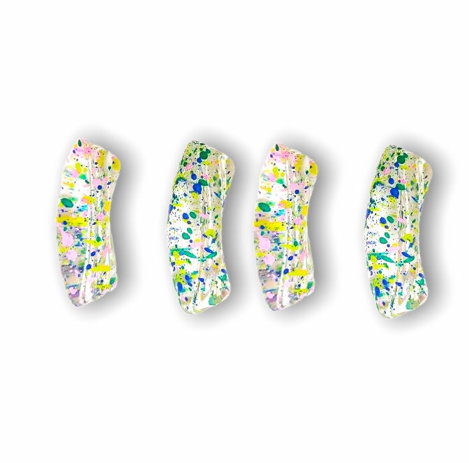 12mm-Lily Multicolor Graffiti Paint Splatter Beads - 12mm ( 10 mm ) Lily Inspired Acrylic Tube Beads, Curved Tube Bead, Lucite Bracelet