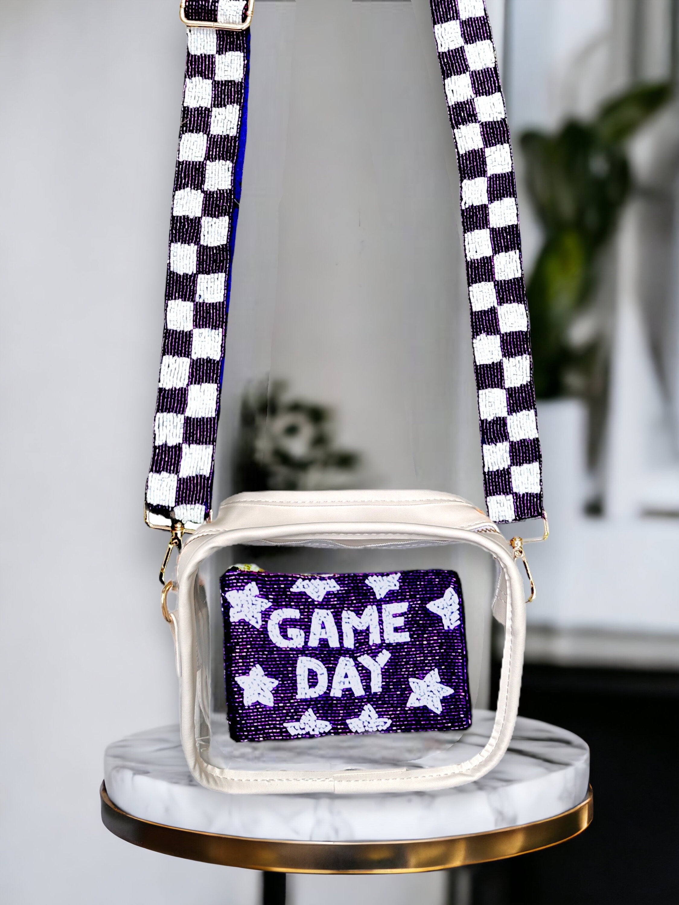 Classic Checkered Adjustable Beaded Strap |Perfect for Stadium Bags Concert- Clear Bags -Game Day Crossbody Sports Team Football -STRAP ONLY