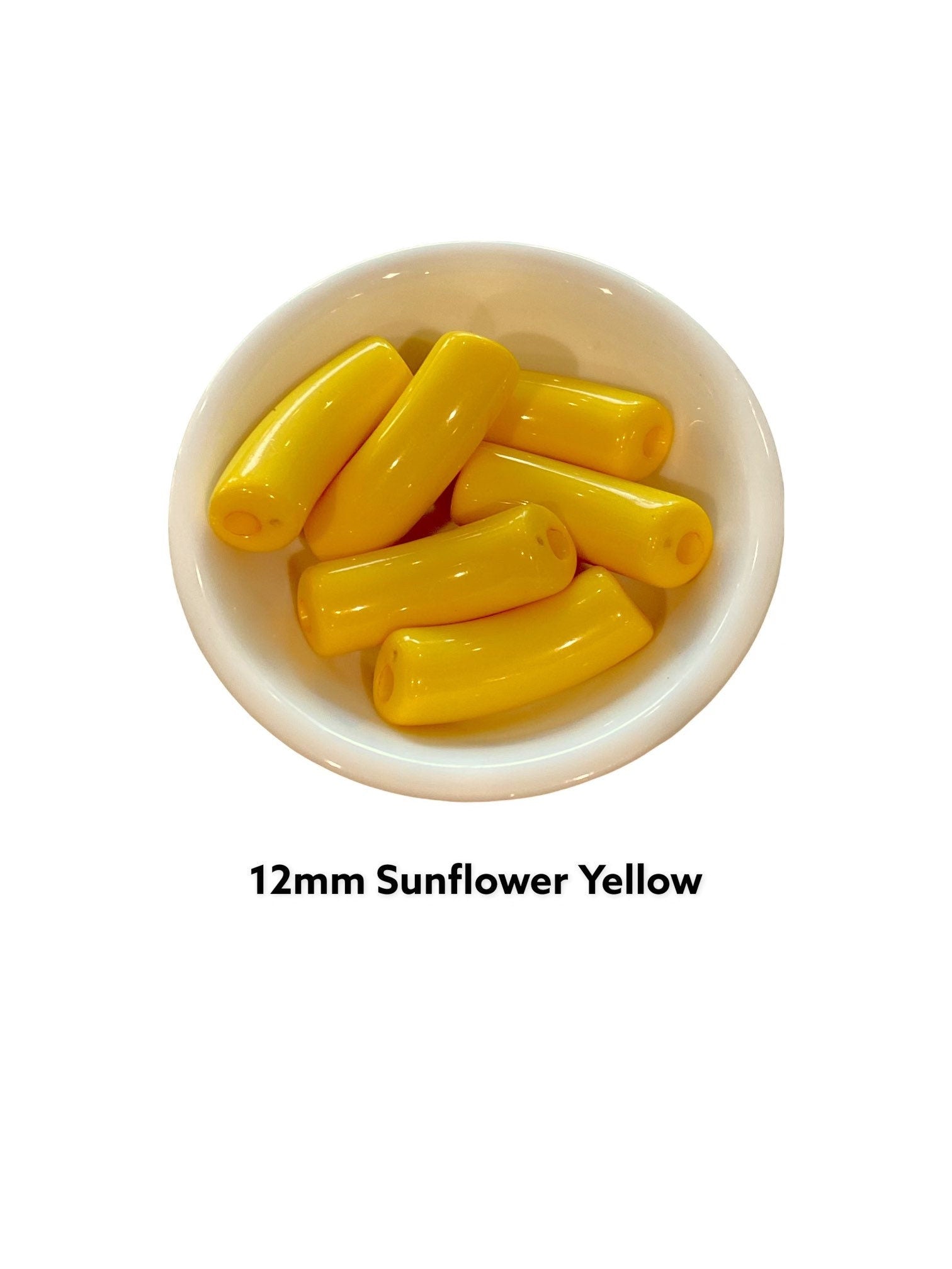 12mm Yellow Sunflower- Fall - Acrylic Beads, 10mm (12mm) Curved Tube Beads, Resin ,Bracelet Bangle Tube Bead Waterproof Bangle