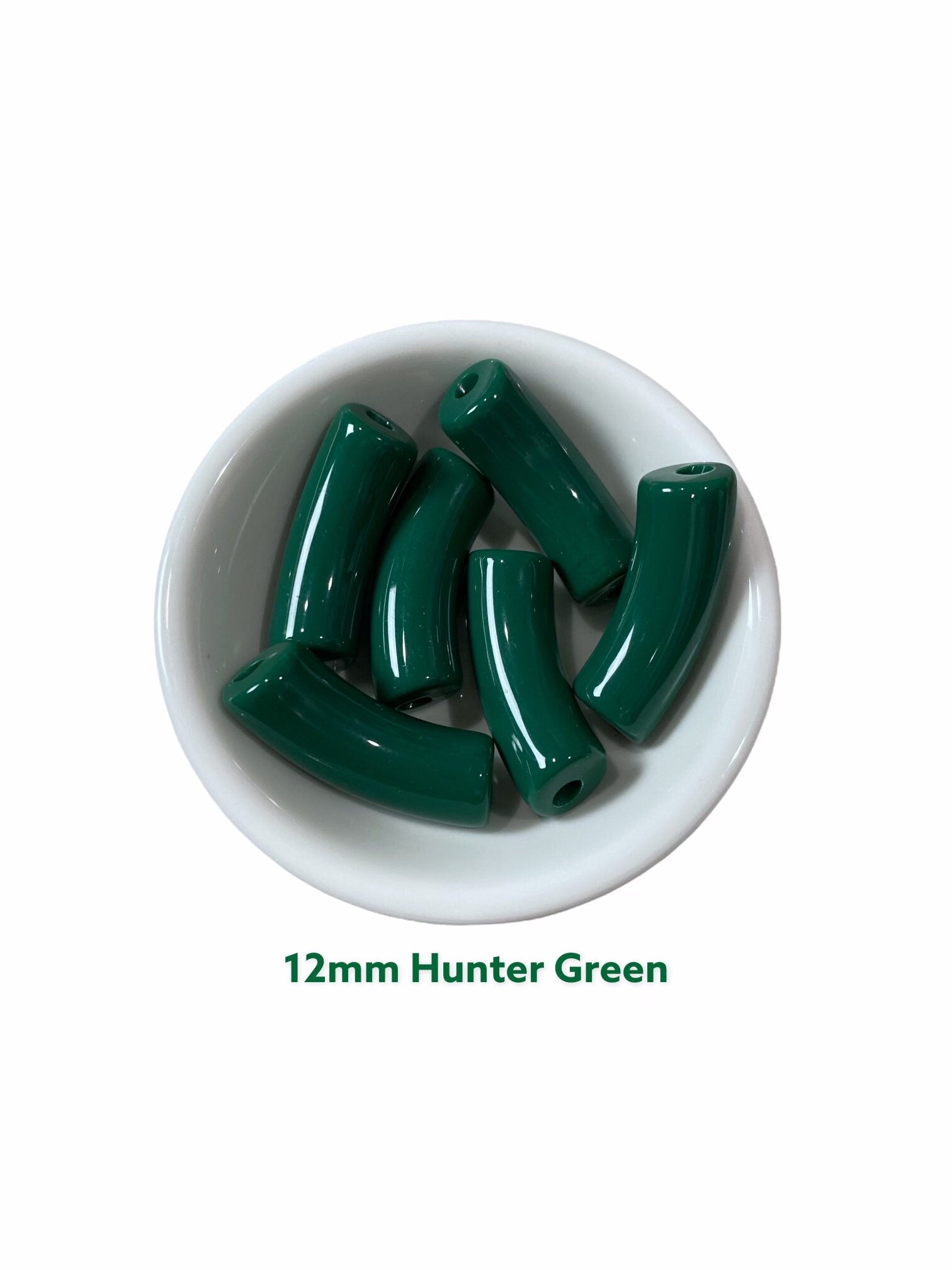 12mm Hunter Green- Fall - Acrylic Beads, 10mm (12mm) Curved Tube Beads, Resin ,Bracelet Bangle Tube Bead Waterproof Bangle