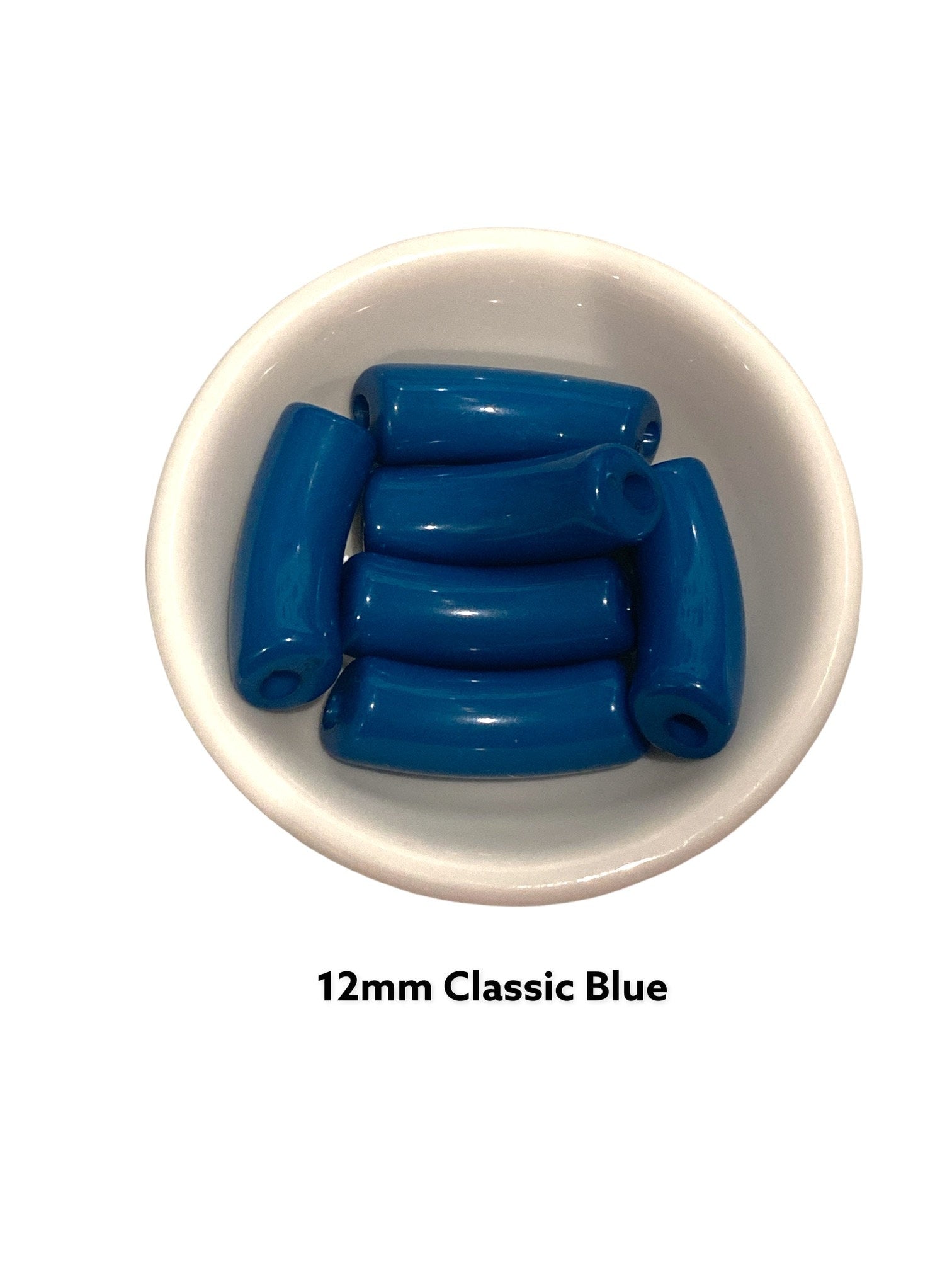 12mm Classic Blue -Tube Acrylic Beads, Curved Tube Beads, Resin 11 mm x 35mm, Bamboo Bracelet Bangle ACRYLIC TUBE BEAD