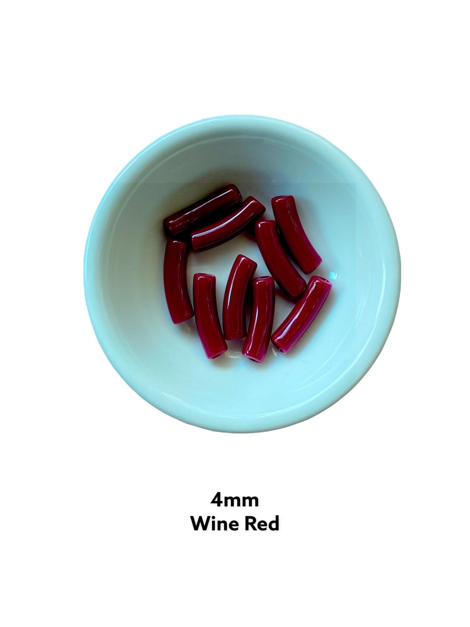 4mm-Wine Red- Tube Bead Acrylic Bamboo Beads, Curved Tube Beads, Resin , Bracelet Bangle Acrylic Tube Bead Christmas Red Holiday