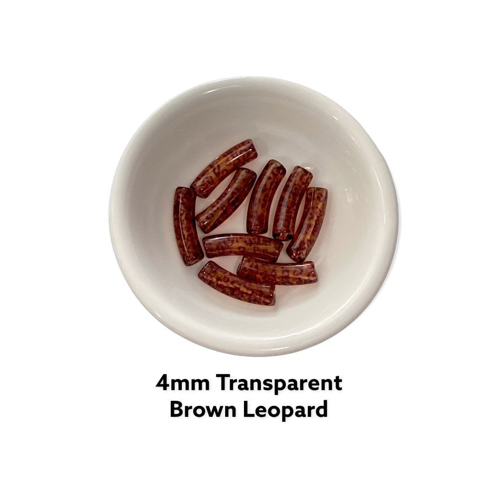 4mm- Brown Leopard - Tube Bead Acrylic Bamboo Beads, Curved Tube Beads, Resin , Bracelet Bangle Acrylic Tube Bead Waterproof