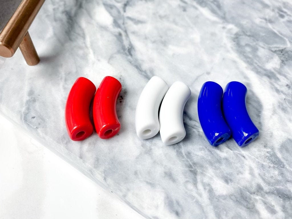 12mm USA Acrylic Tube Beads- 4th of July Memorial Day Pack , Red White Blue - Bamboo Beads, Curved Tube Beads, Resin 12 mm x 35mm, Bracelet