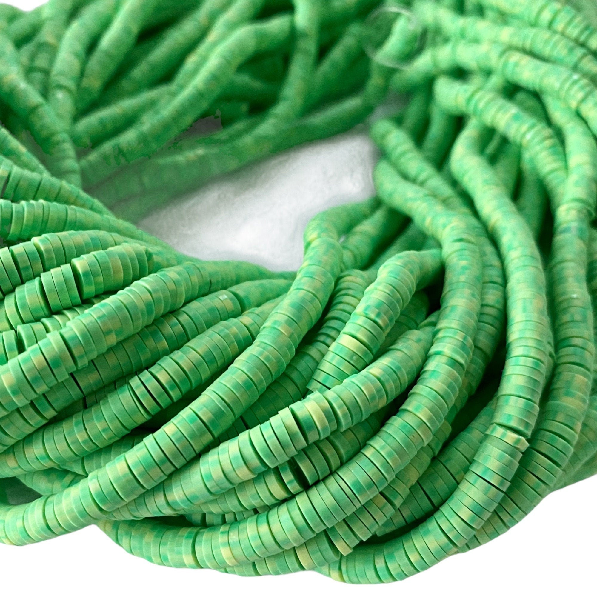 4mm Lime Green - Yellow Vinyl DiscHeishi Beads, Vinyl Beads, Polymer Clay African Vinyl Disc Beads, Vinyl Heishi DIY Making Jewelry