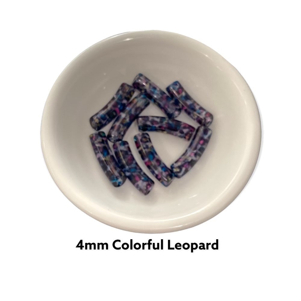 4mm- Colorful Leopard Leopard - Tube Bead Acrylic Bamboo Beads, Curved Tube Beads, Resin , Bracelet Bangle Acrylic Tube Bead Waterproof