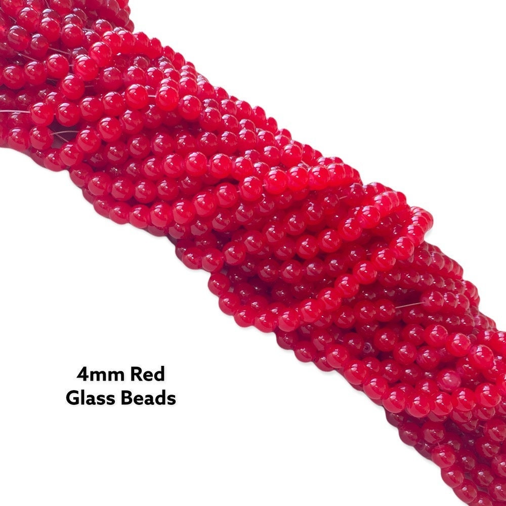 2 Strands- 4mm Glass round beads, Red beads strand,spring Easter beads , Pastel glass beads, bright colored beads smooth polished