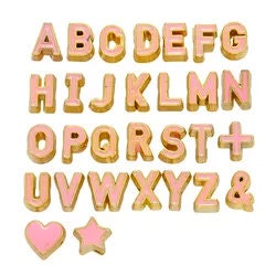 Pink & Gold Outline Enamel Letter Beads, Cast Enamel Letters, Gold Lined Letter Beads, Number, Symbol Beads, Alphabet Beads, Name Beads,