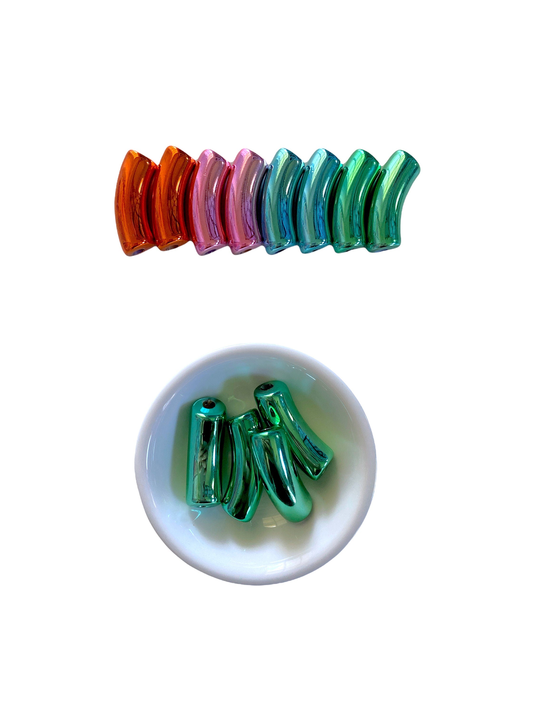 Spring Metallic -Green 12mm Tube Acrylic Beads,l Curved Tube Beads, Resin 11 mm x 35mm, Bamboo Bracelet Bangle ACRYLIC TUBE BEAD, Easter