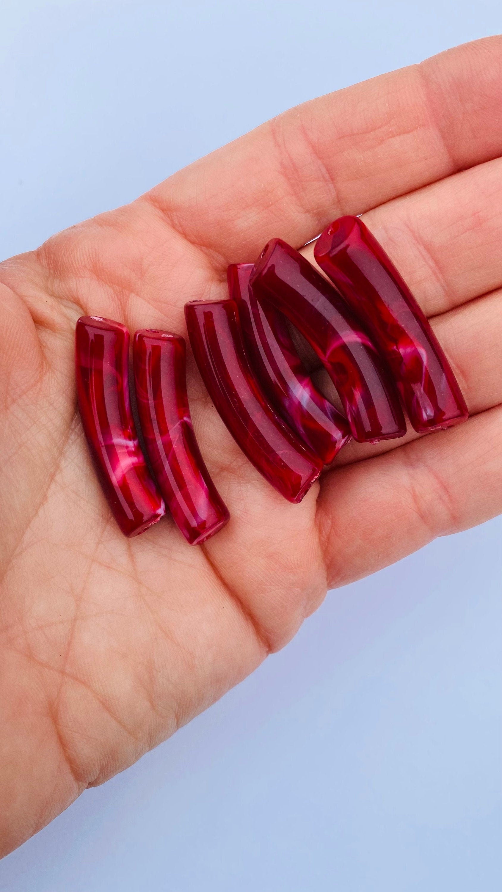 Red Burgundy Marble Tube beads- 6mm (8mm) Acrylic Beads, Curved Tube Beads, Resin , Bracelet Bangle Acrylic Tube Bead Waterproof