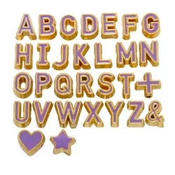 Purple & Gold Outline Enamel Letter Beads, Cast Enamel Letters, Gold Lined Letter Beads, Number, Symbol Beads, Alphabet Beads, Name Beads,
