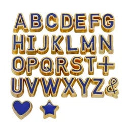Royal Blue & Gold Outline Enamel Letter Beads, Cast Enamel Letters, Gold Lined Letter Bead, Number, Symbol Beads, Alphabet Beads, Name Beads