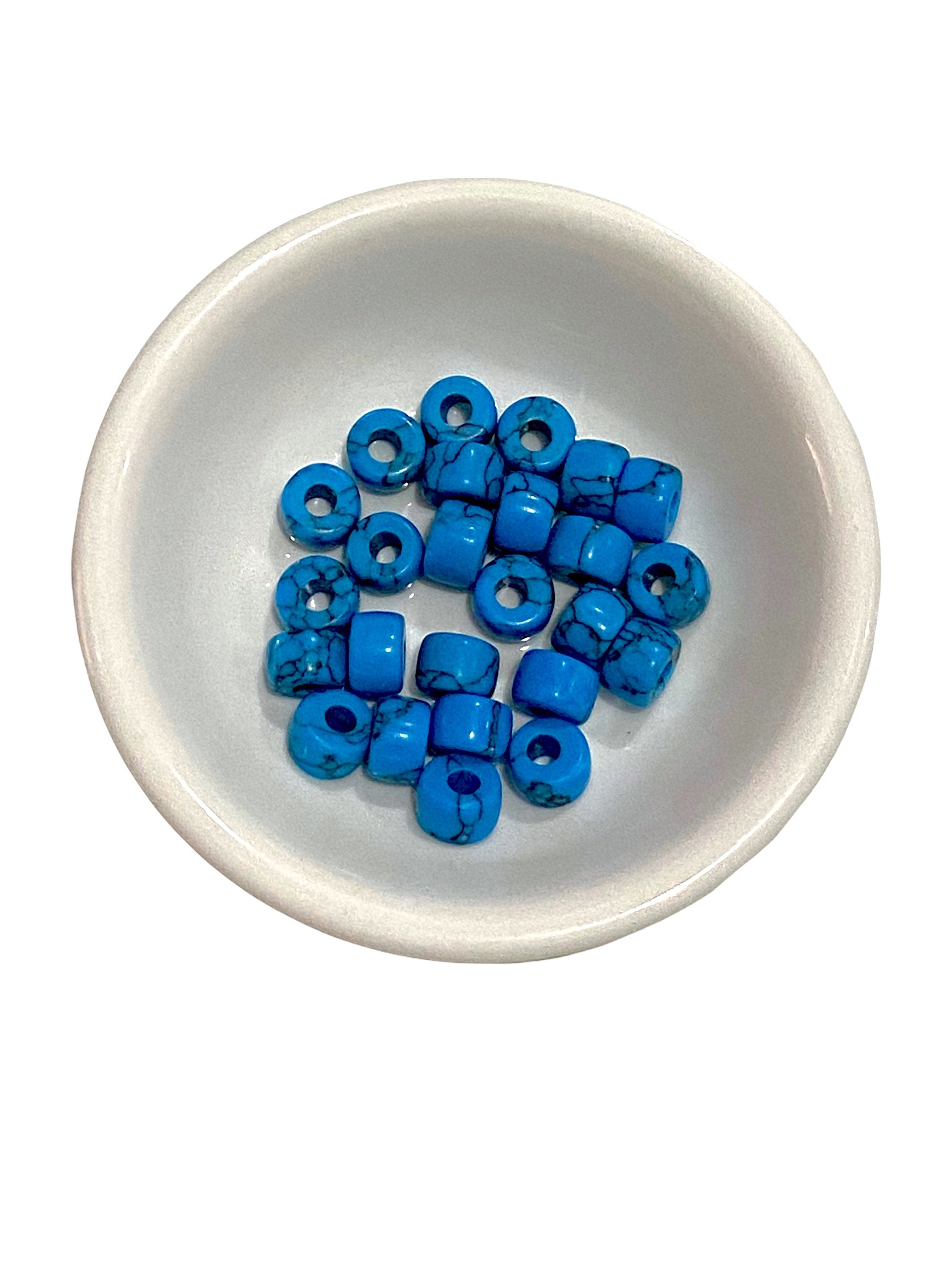 Turquoise Blue- Forte Gemstone Beads- #60- 20 Beads- marbled 8mm x 6mm- Lurex Cord Bracelet