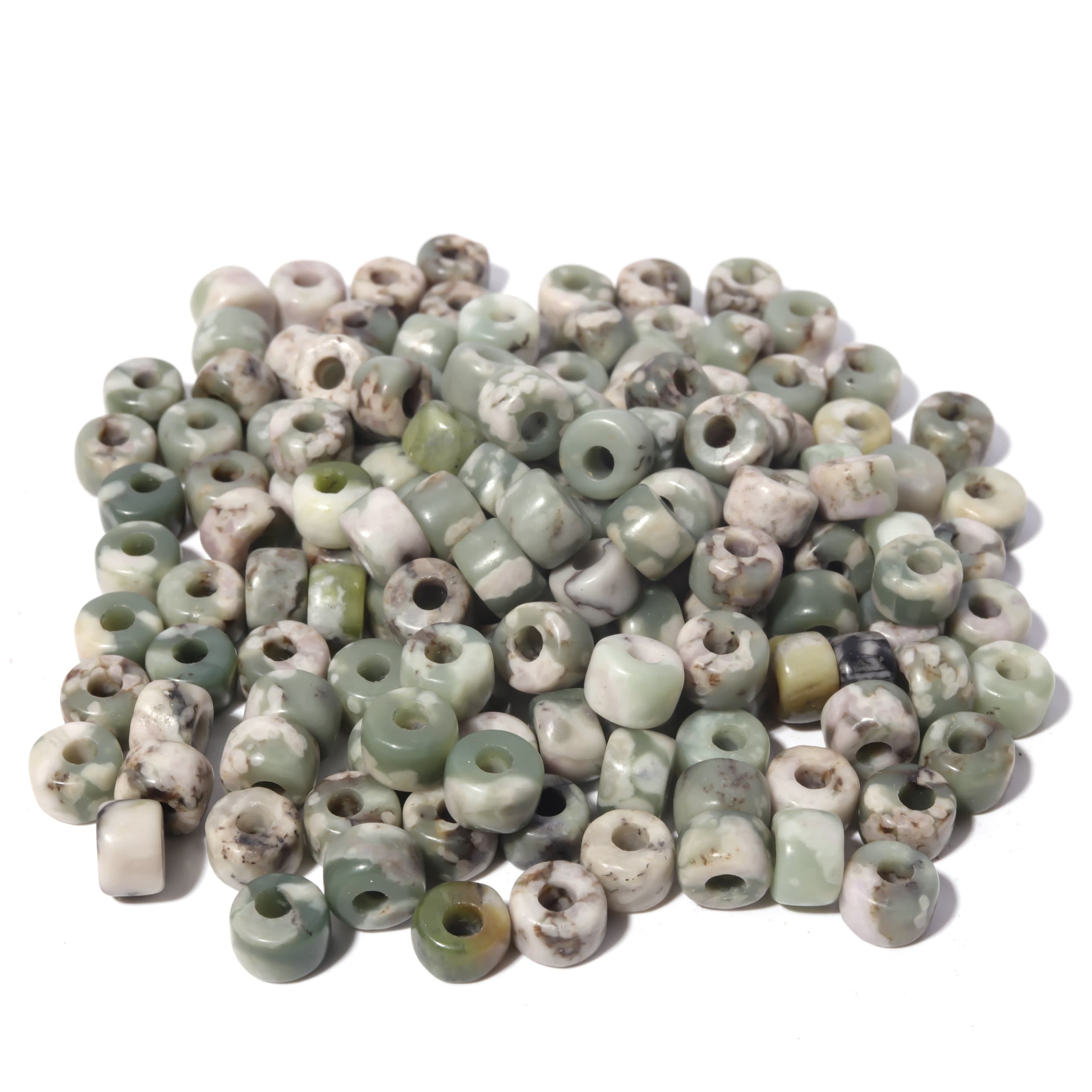 Green- Forte Gemstone Beads- #65- 20 Beads- marbled 8mm x 6mm- Lurex Cord Bracelet