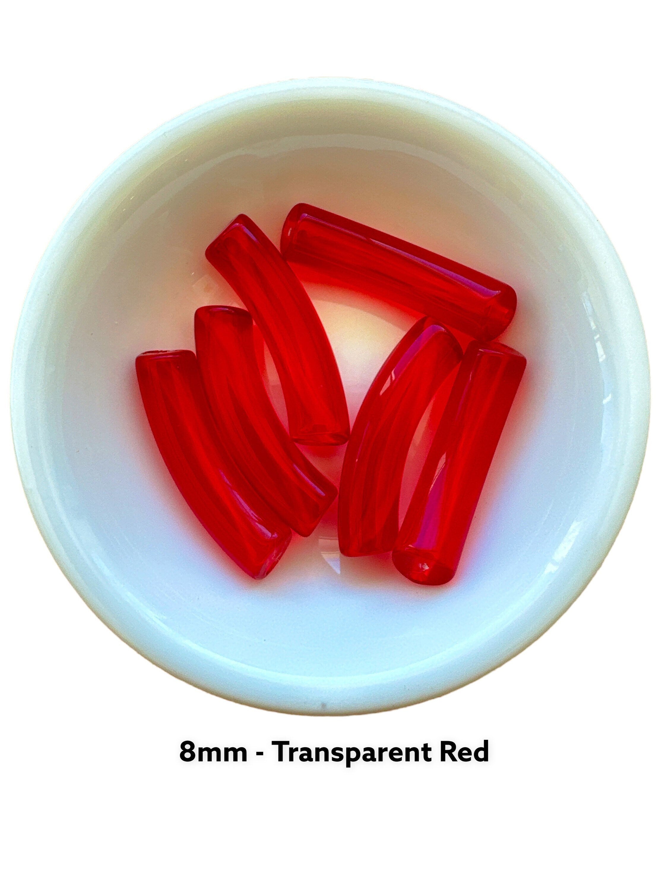 Red Transparent -8mm Clear Red Acrylic Tube Bamboo Beads, Curved Tube Beads, Holiday, Bamboo Bracelet Bangle Acrylic Tube