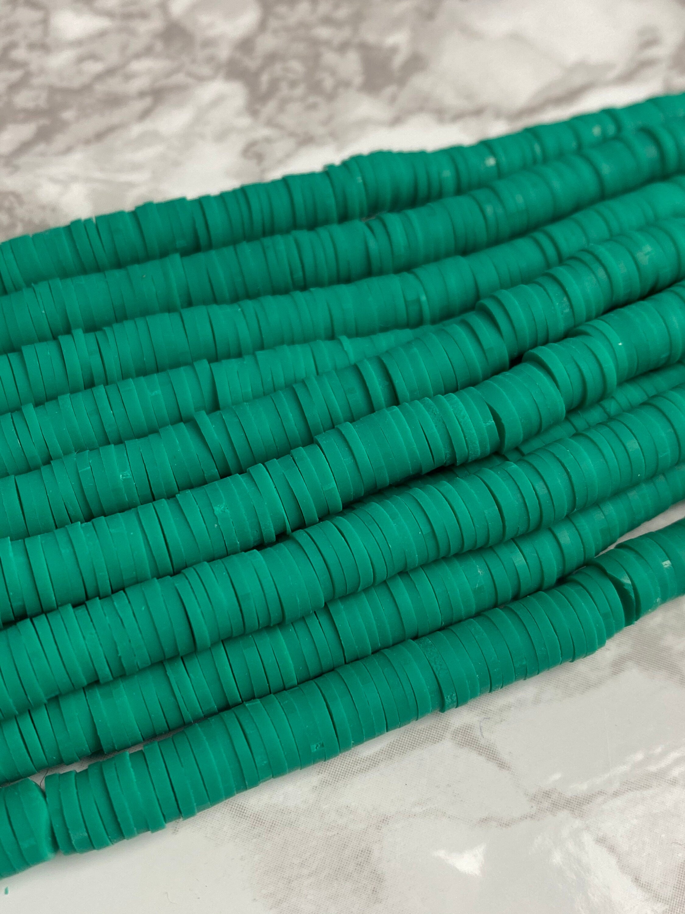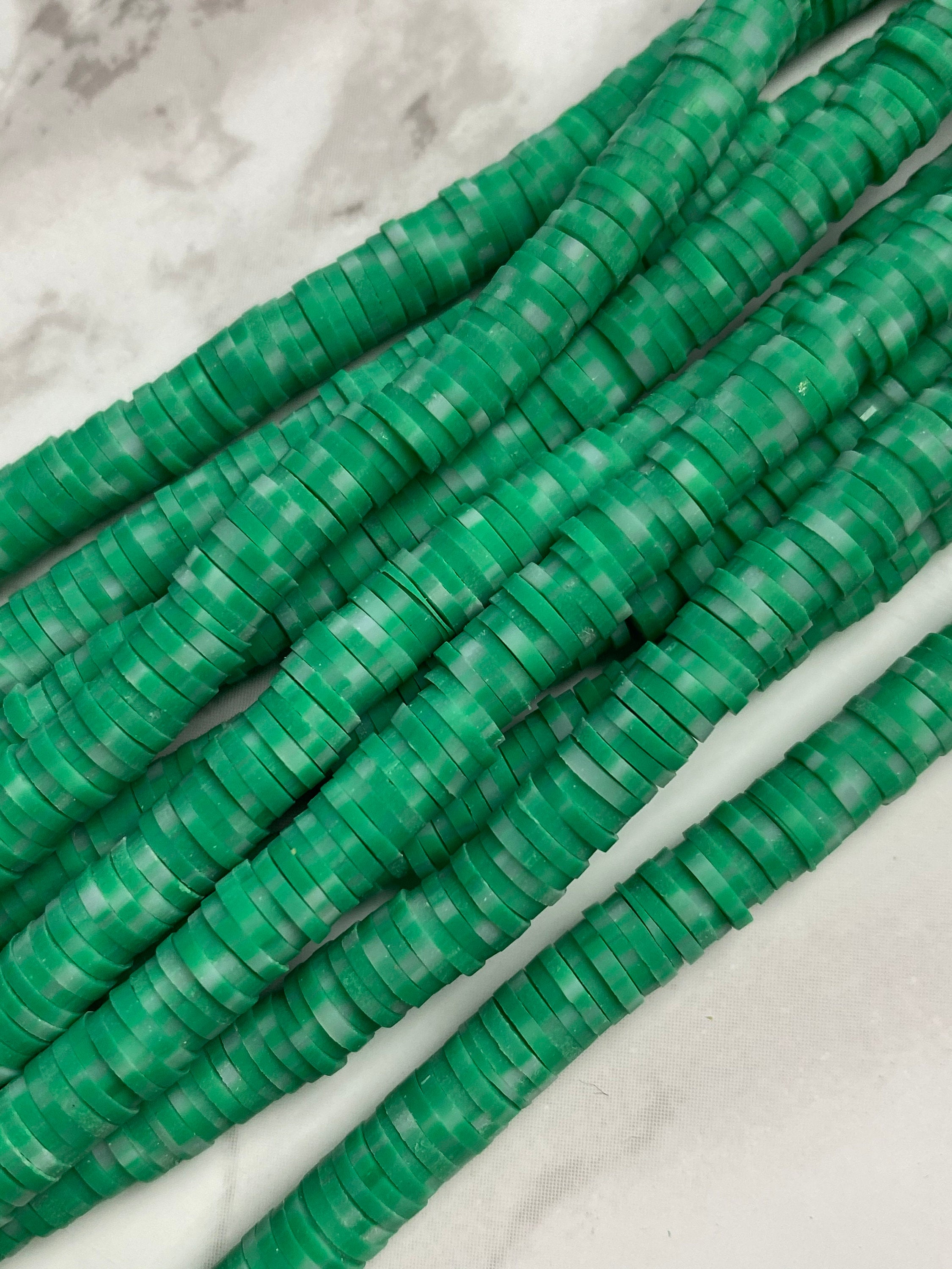 6mm Christmas Green Vinyl Heishi Beads, kelly green Vinyl Beads, African Vinyl Disc Beads, Wholesale Vinyl Heishi DIY Jewelry Beads