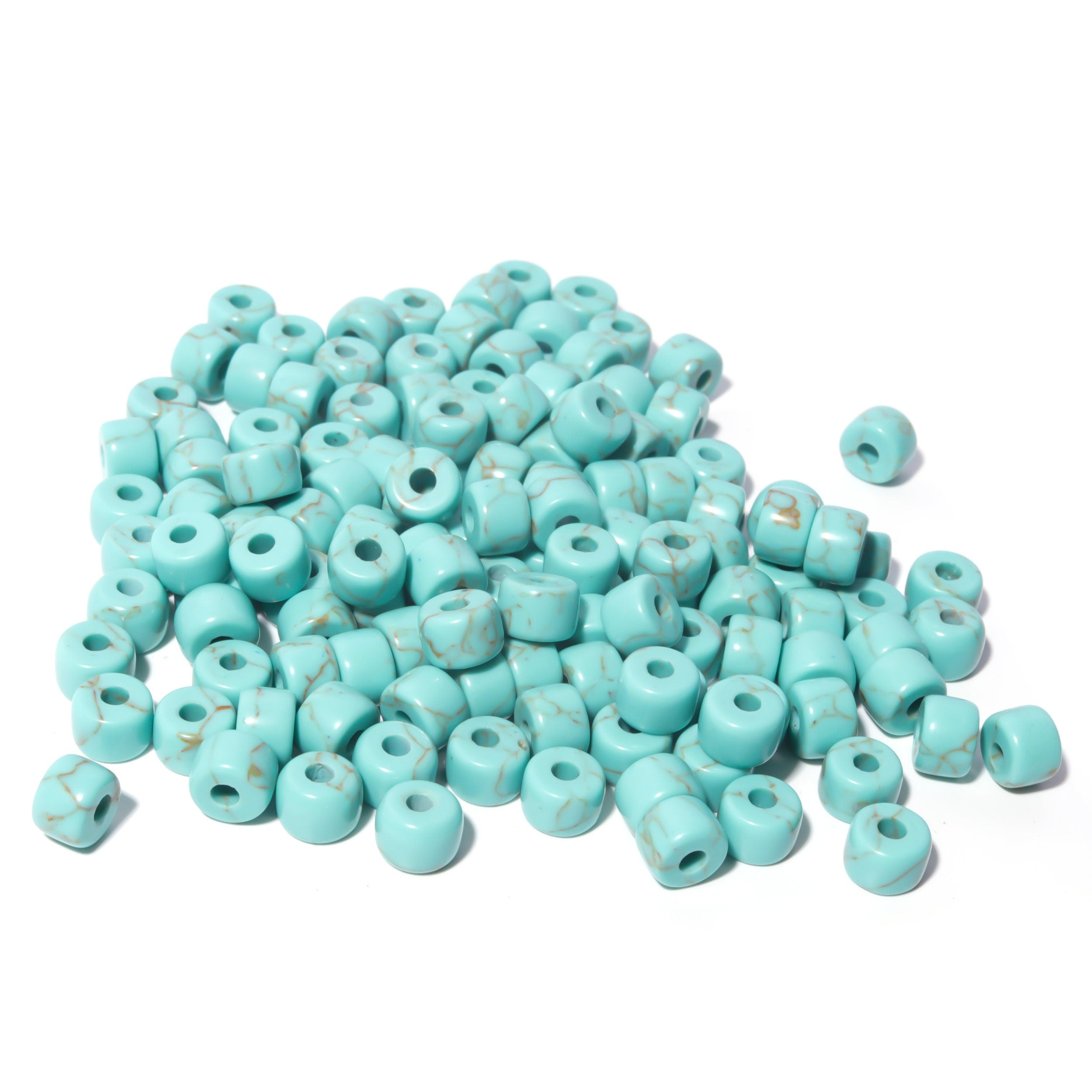 Turquoise Blue- Forte Gemstone Beads- #60- 20 Beads- marbled 8mm x 6mm- Lurex Cord Bracelet