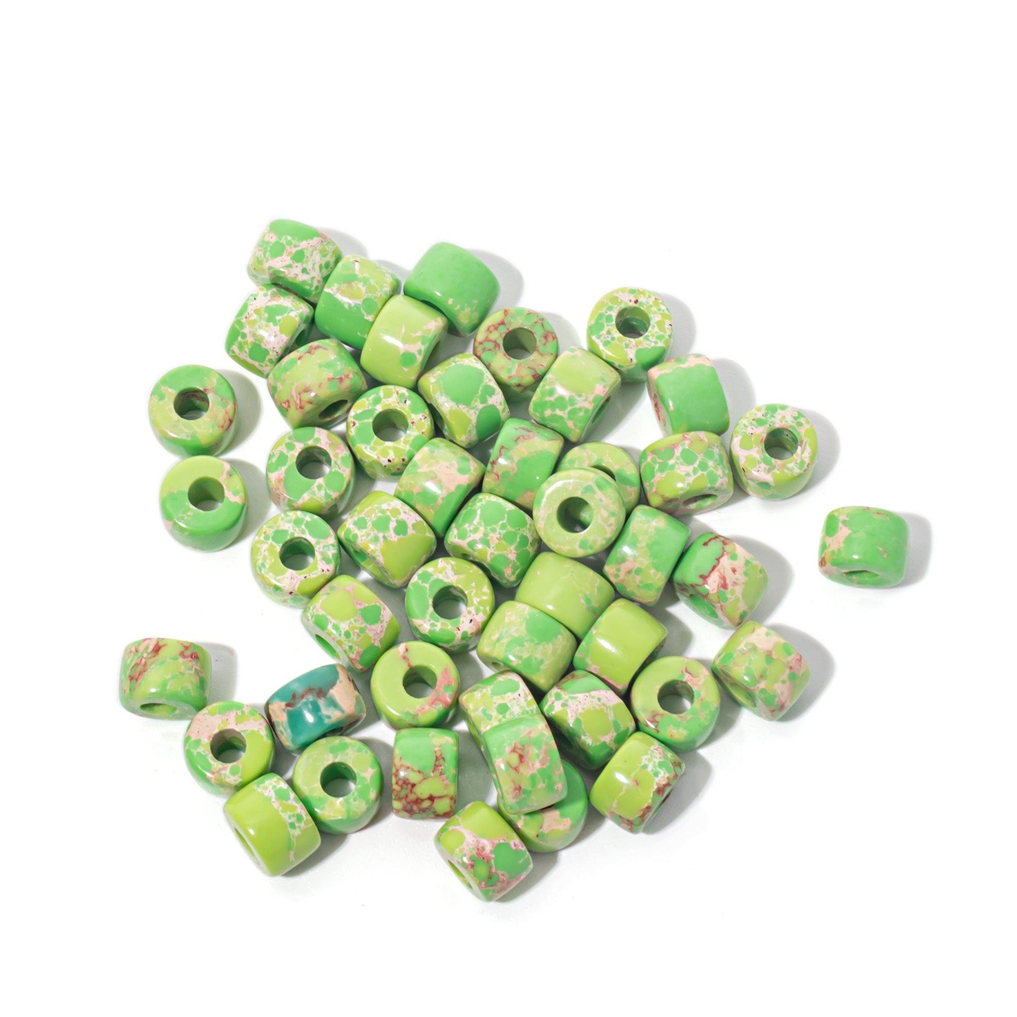 Lime Green Jasper Gemstone Beads- #105- 20 Beads- 8mm x 6mm- Lurex Cord Bracelet