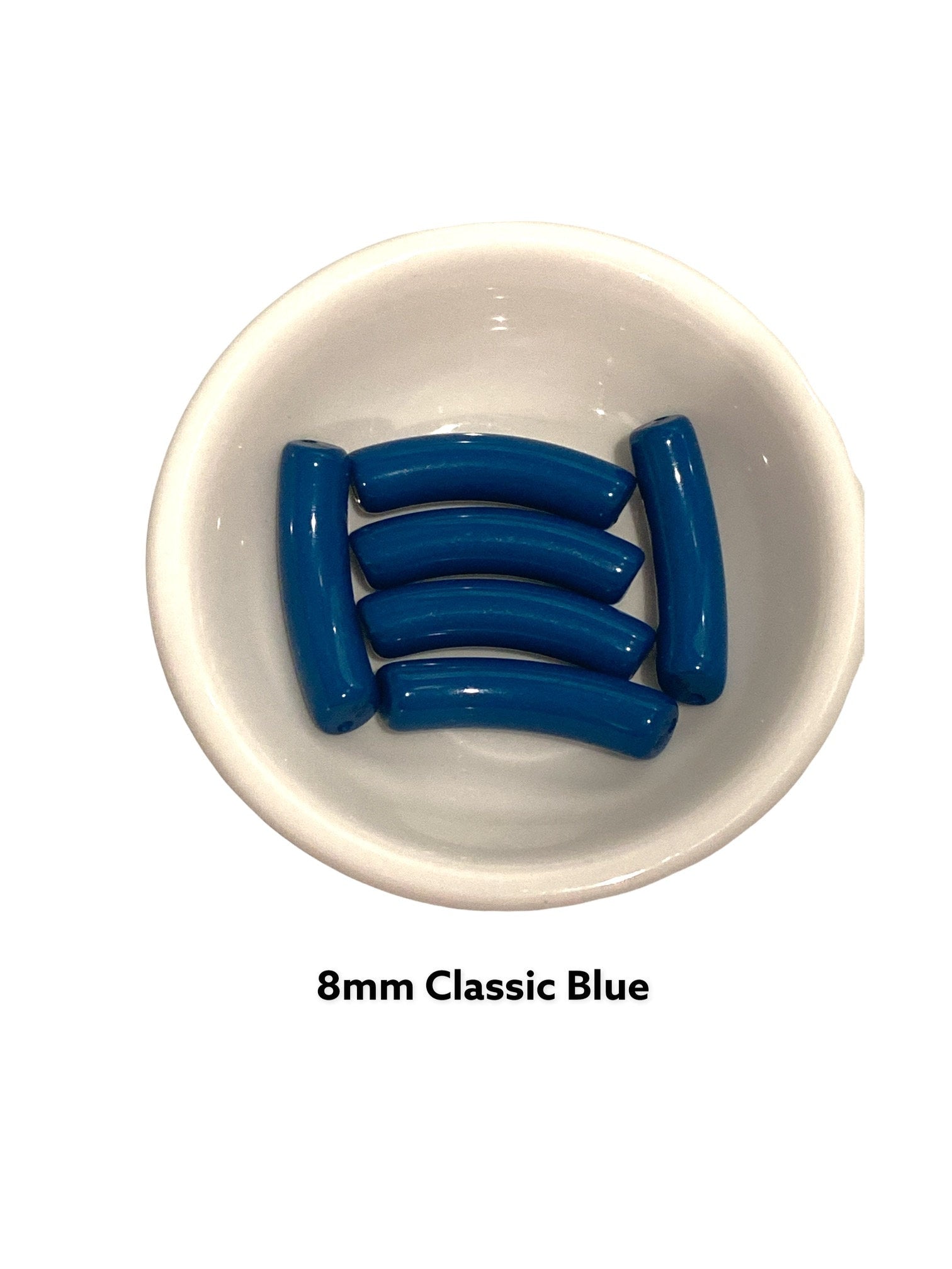 8mm Classic Blue- Tube beads- Winter, Spring Acrylic Beads, Curved Tube Beads, Resin , Bracelet Bangle Acrylic Tube Bead Bangle 6mm