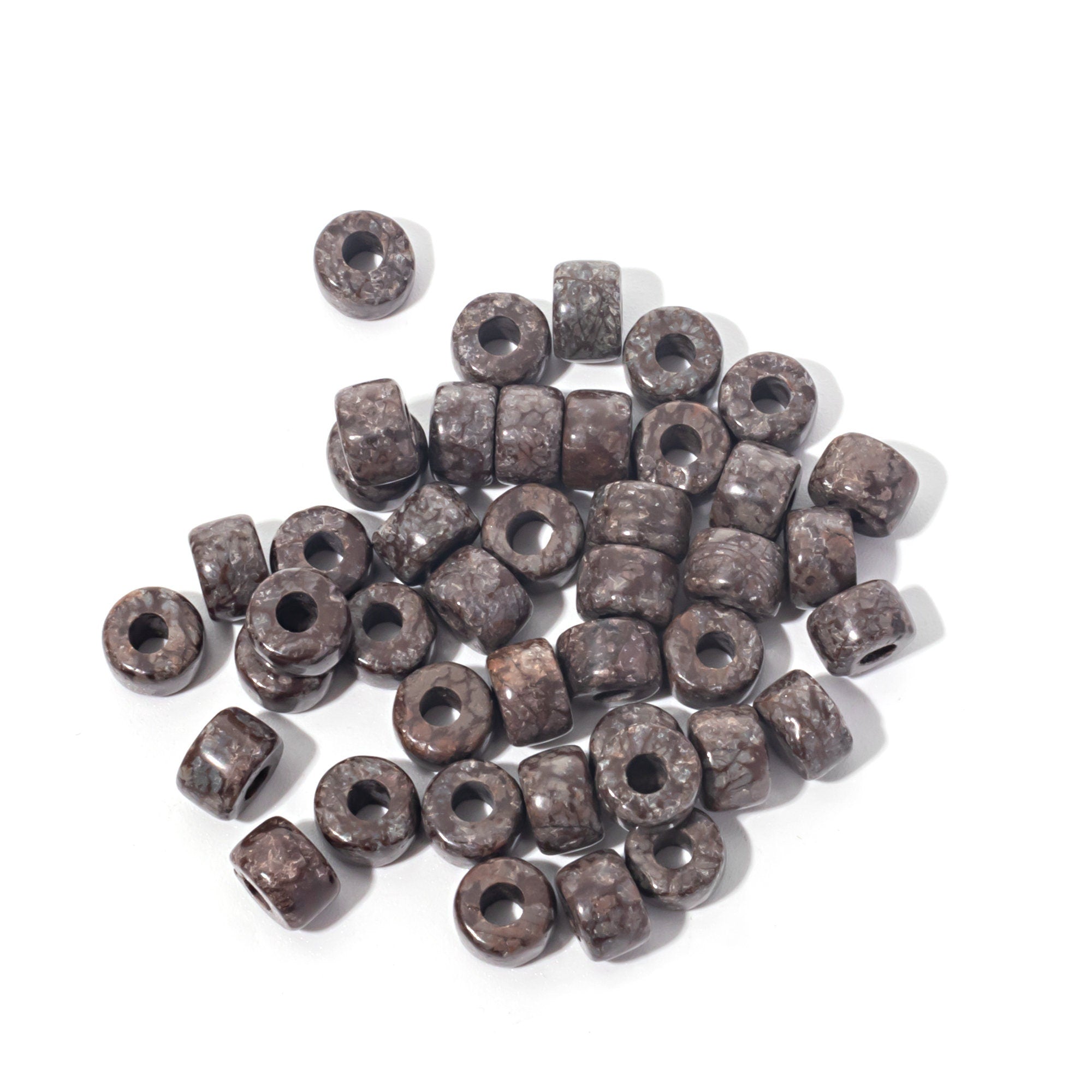 Gray - Forte Gemstone Beads- #100- 20 Beads- marbled 8mm x 6mm- Lurex Cord Bracelet