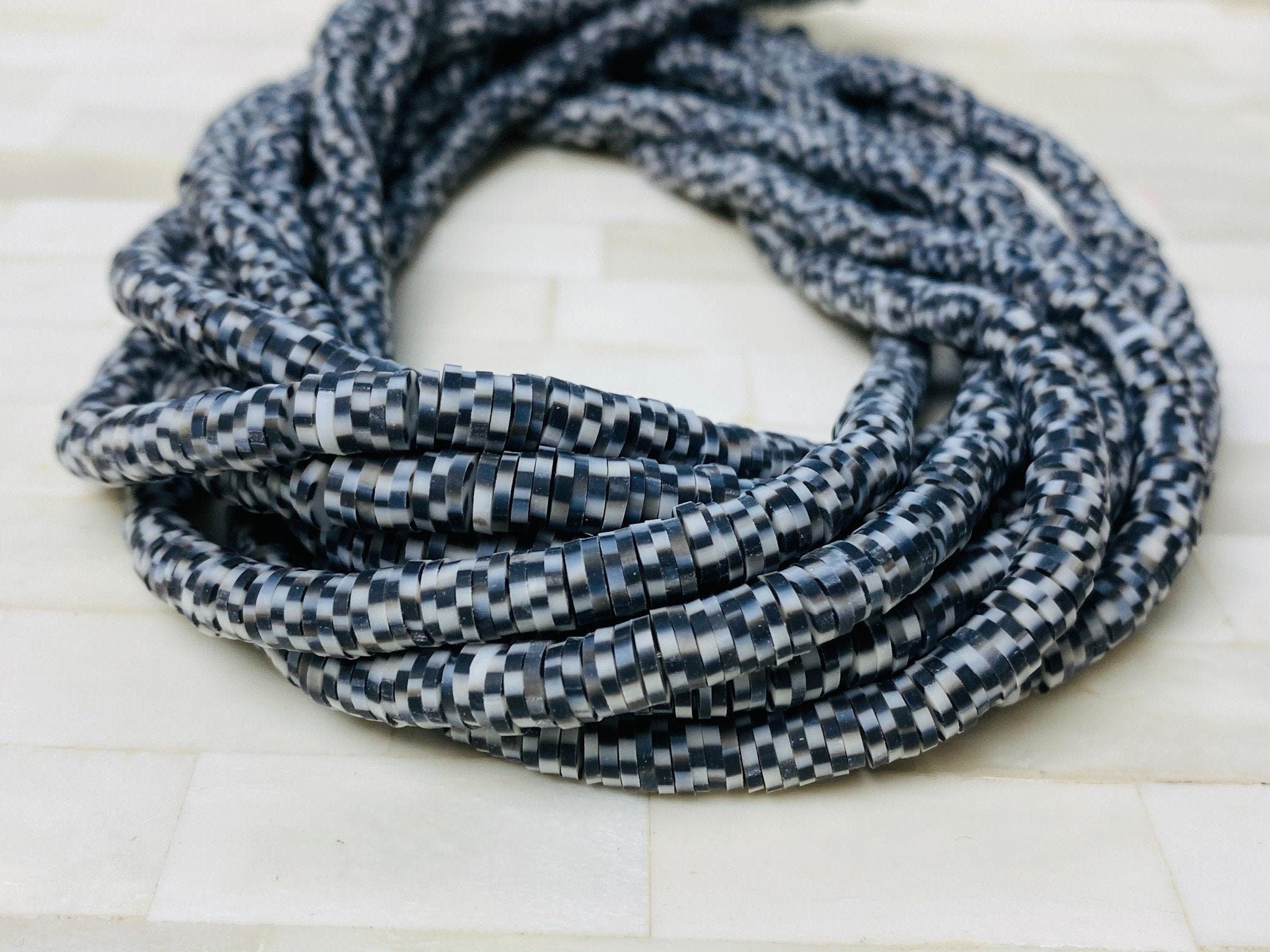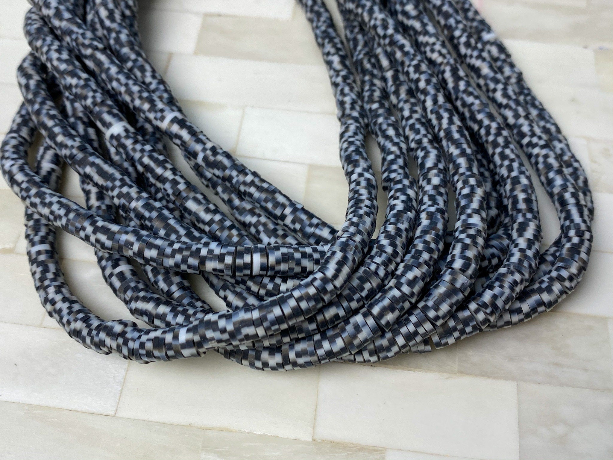 6mm Black Speckled Onyx Speckled Vinyl Heishi Beads, Polymer Clay African Vinyl Disc Beads, Wholesale Vinyl Heishi DIY Making Jewelry