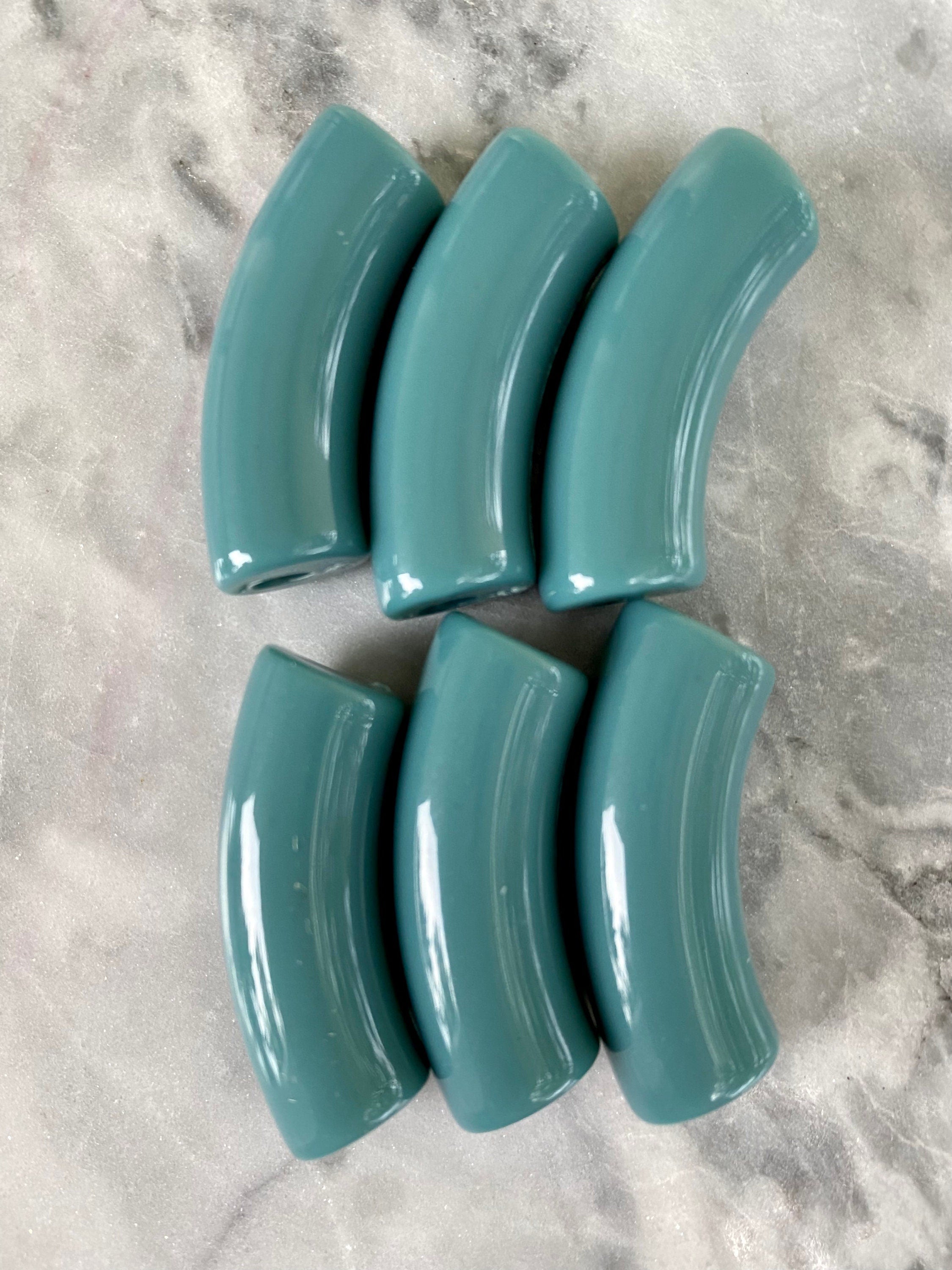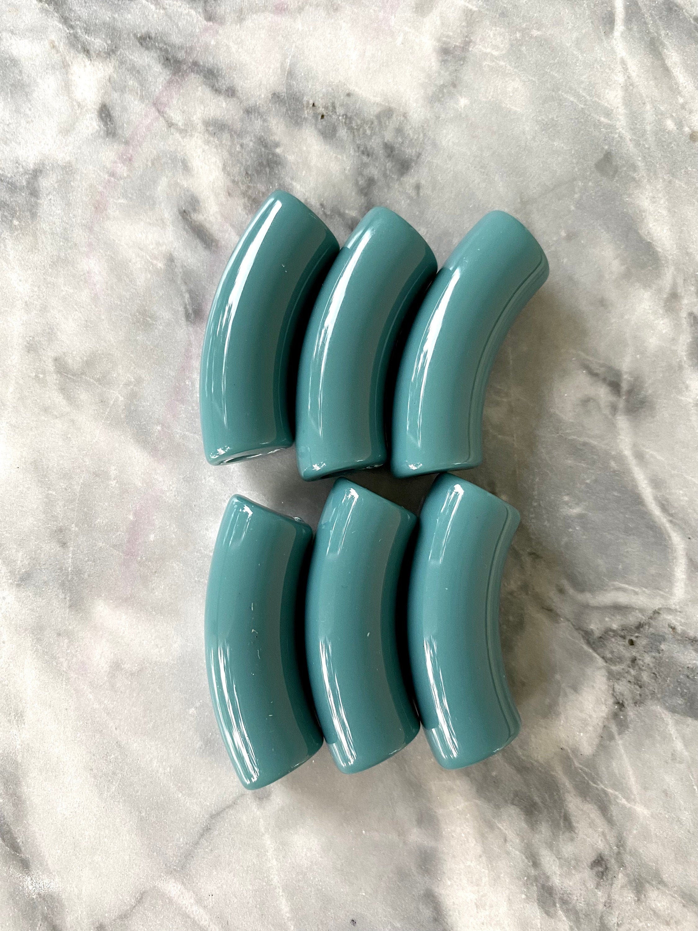 Dusty Teal Tube beads- 10mm (12mm) Fall Acrylic Beads, Curved Tube Beads, Resin , Bracelet Bangle Acrylic Tube Bead Waterproof Bangle