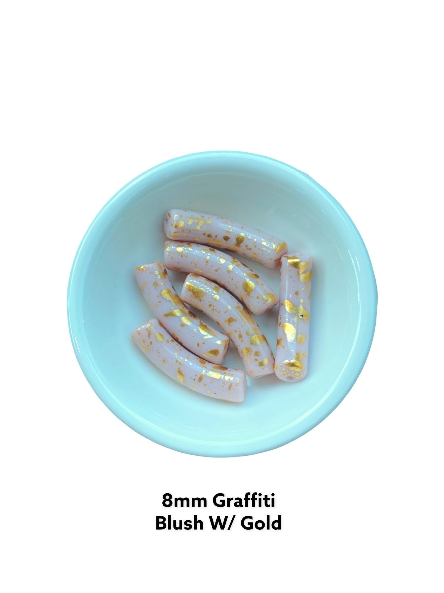 8mm Blush Graffiti- Glam & Gold Holiday Graffiti Paint Splatter Beads - 6mm ( 8 mm) Acrylic Tube Beads, Curved Tube Bead, Resin Bracelet