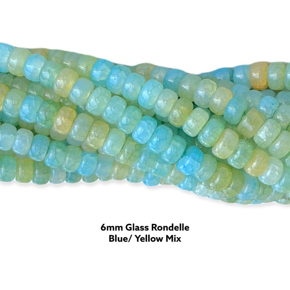 6mm Glass Rondelle beads, Blue/ Yellow Mix beads strand, spring Easter beads , Pastel glass beads, bright colored beads smooth polished