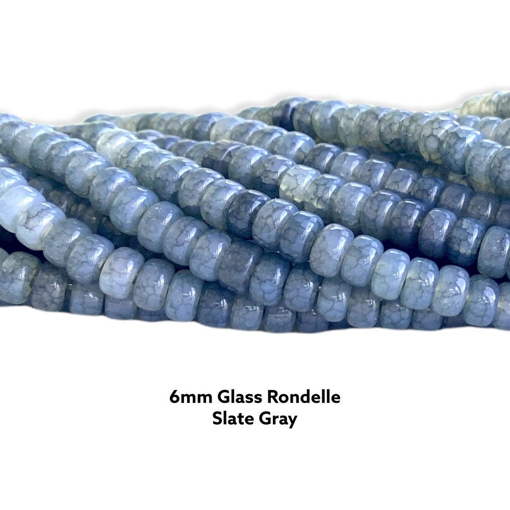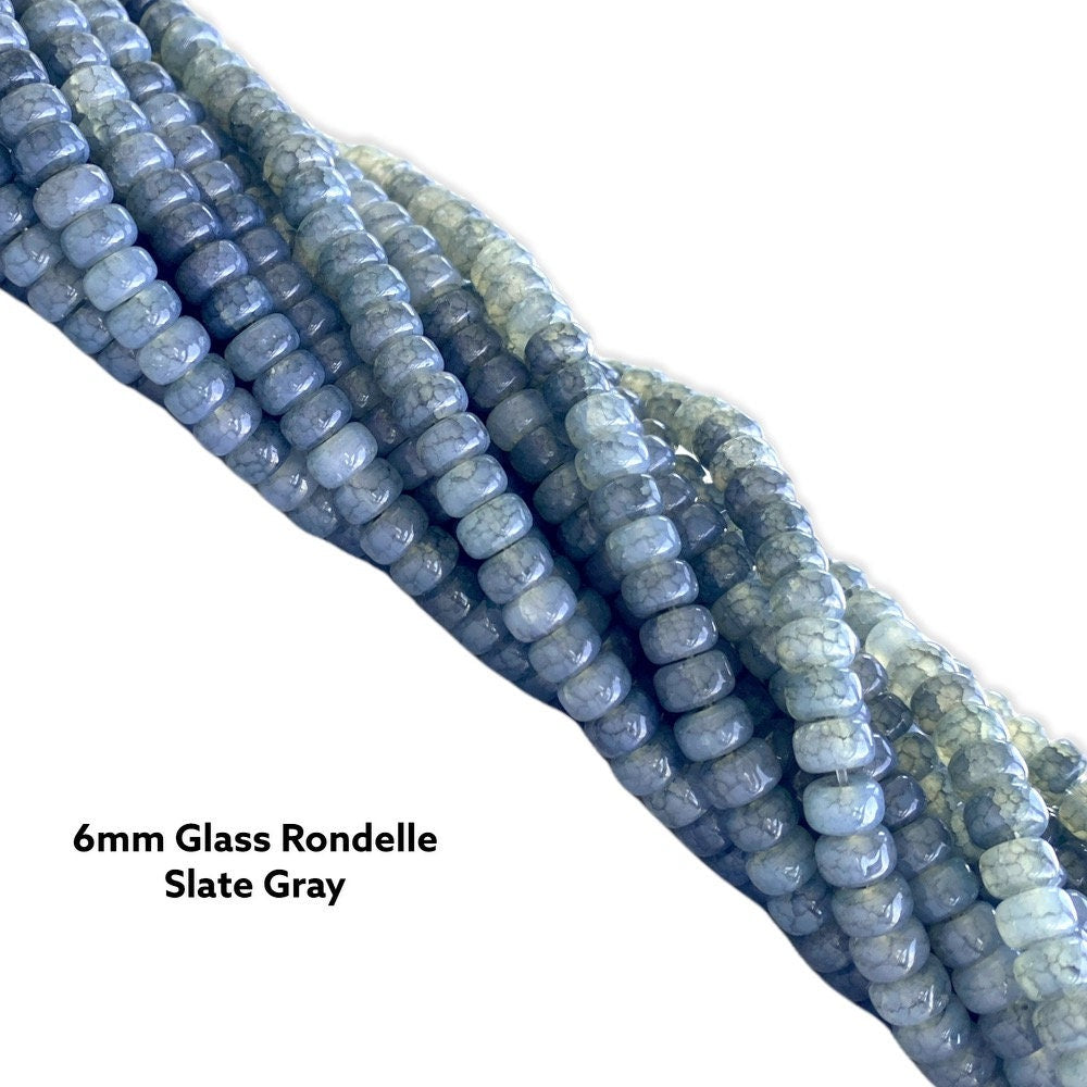6mm Glass Rondelle beads, Slate Gray beads strand, spring Easter beads , Pastel glass beads, bright colored beads smooth polished