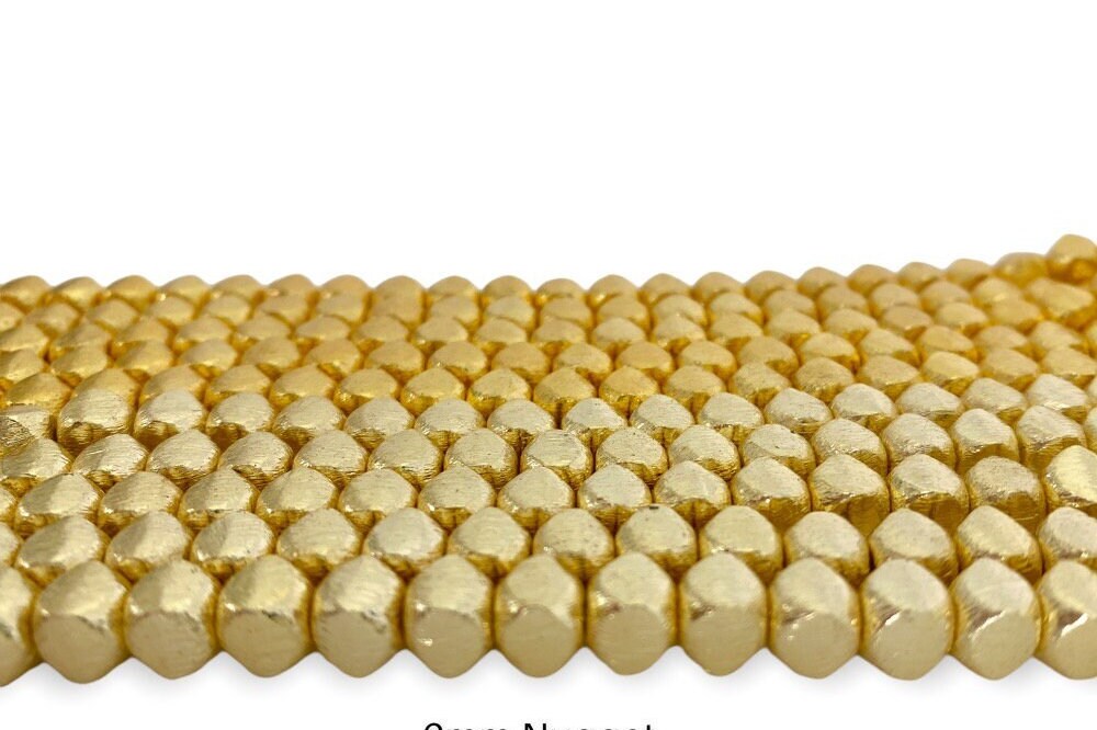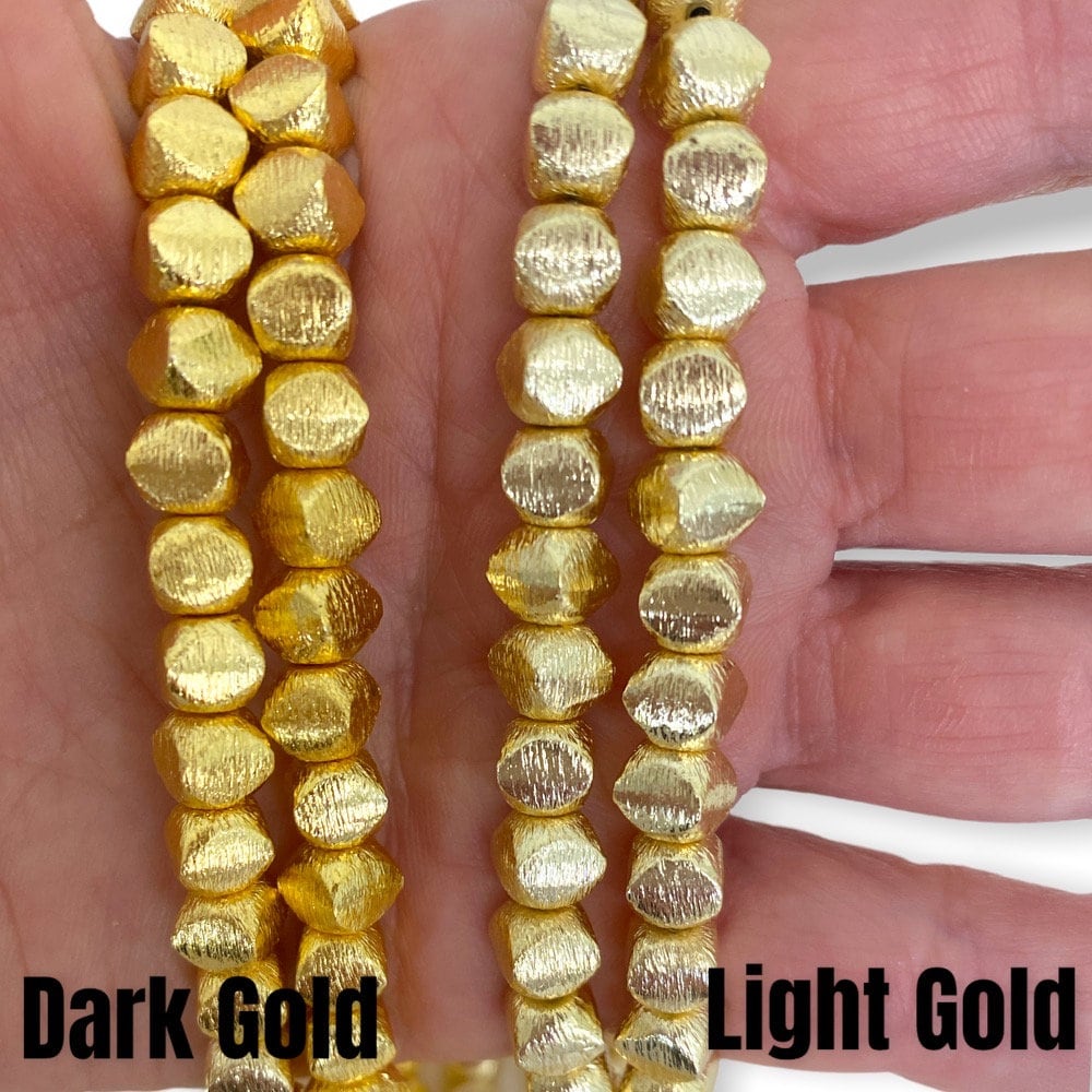 8mm Nugget Cube- Brushed Gold Nugget Bead - 8mm Gold Disc Spacer Accent Bead, Gold Plated Square Nugget Spacer Accent Bead