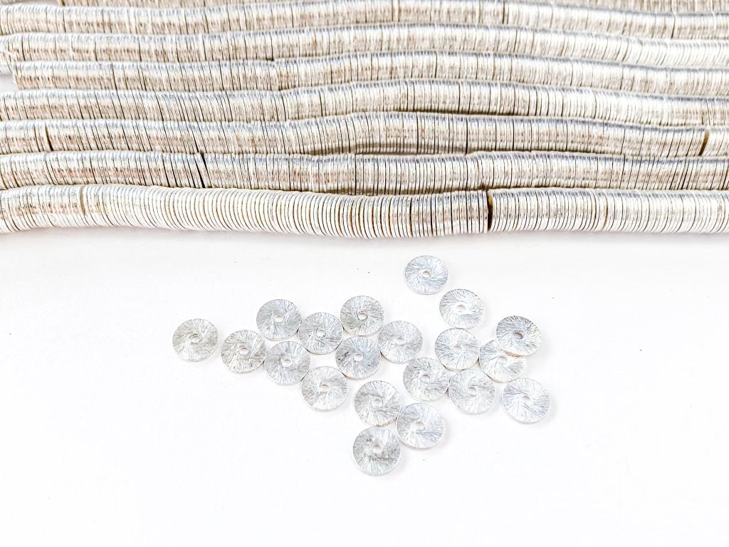 6mm Brushed Silver Heishi Bead - Sterling Silver Disc Spacer Accent Bead Silver Flat Spacer Beads, 2Round Brushed Metal Discs, Findings