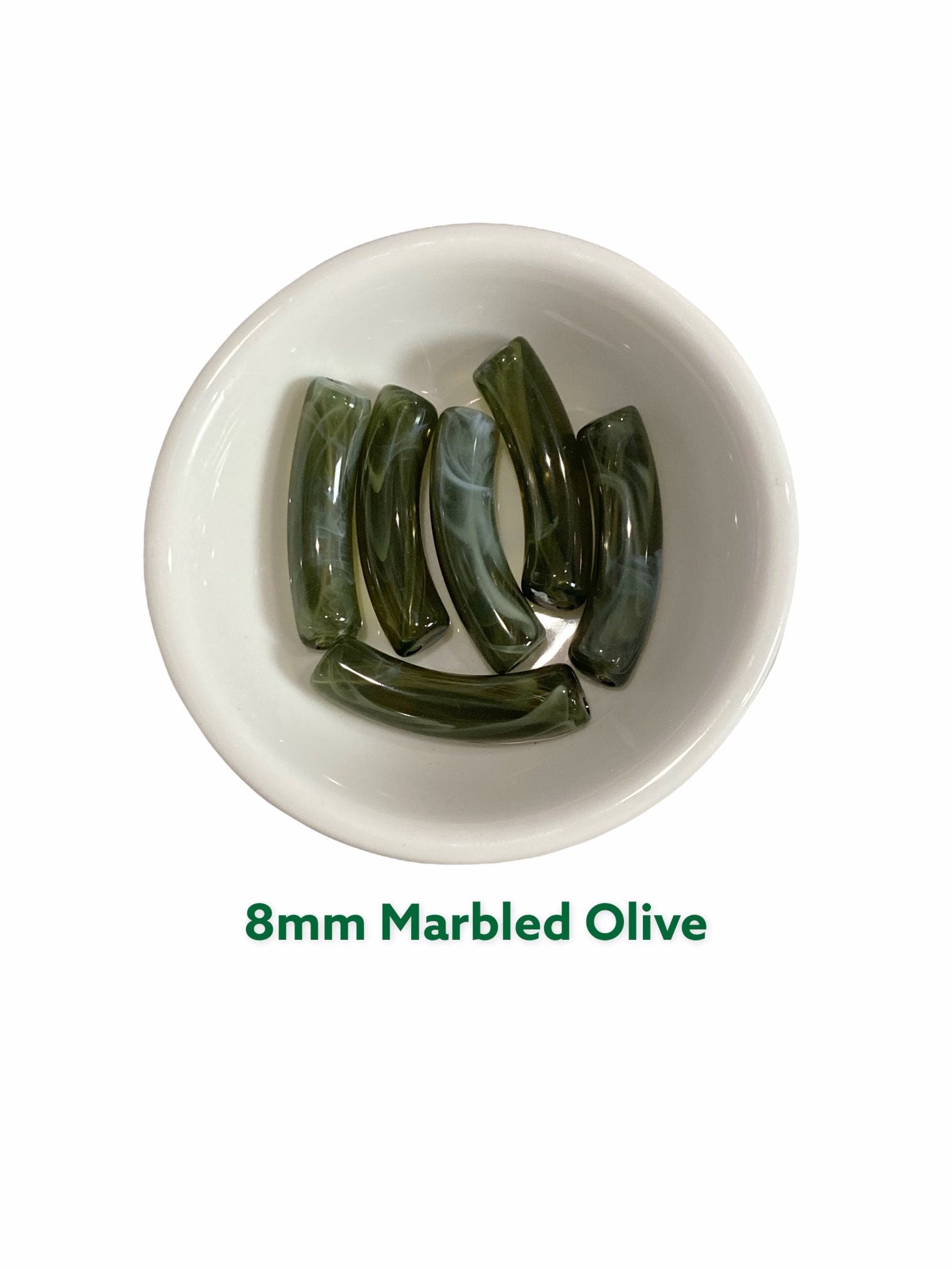 8mm - Olive Green- Small Acrylic Tube Beads, Curved Tube Beads, Resin, Bamboo Bracelet Bangle Acrylic Tube