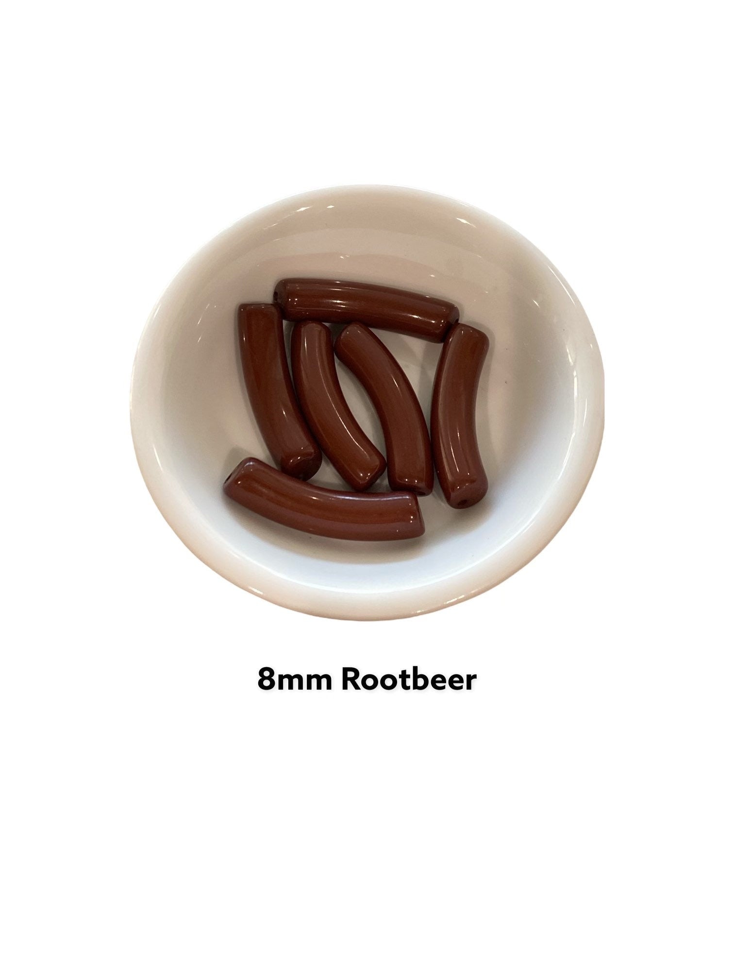 8mm Root-beer Brown- Fall -Brown - Acrylic Beads, 6mm (8mm) Curved Tube Beads, Resin ,Bracelet Bangle Tube Bead Waterproof Bangle