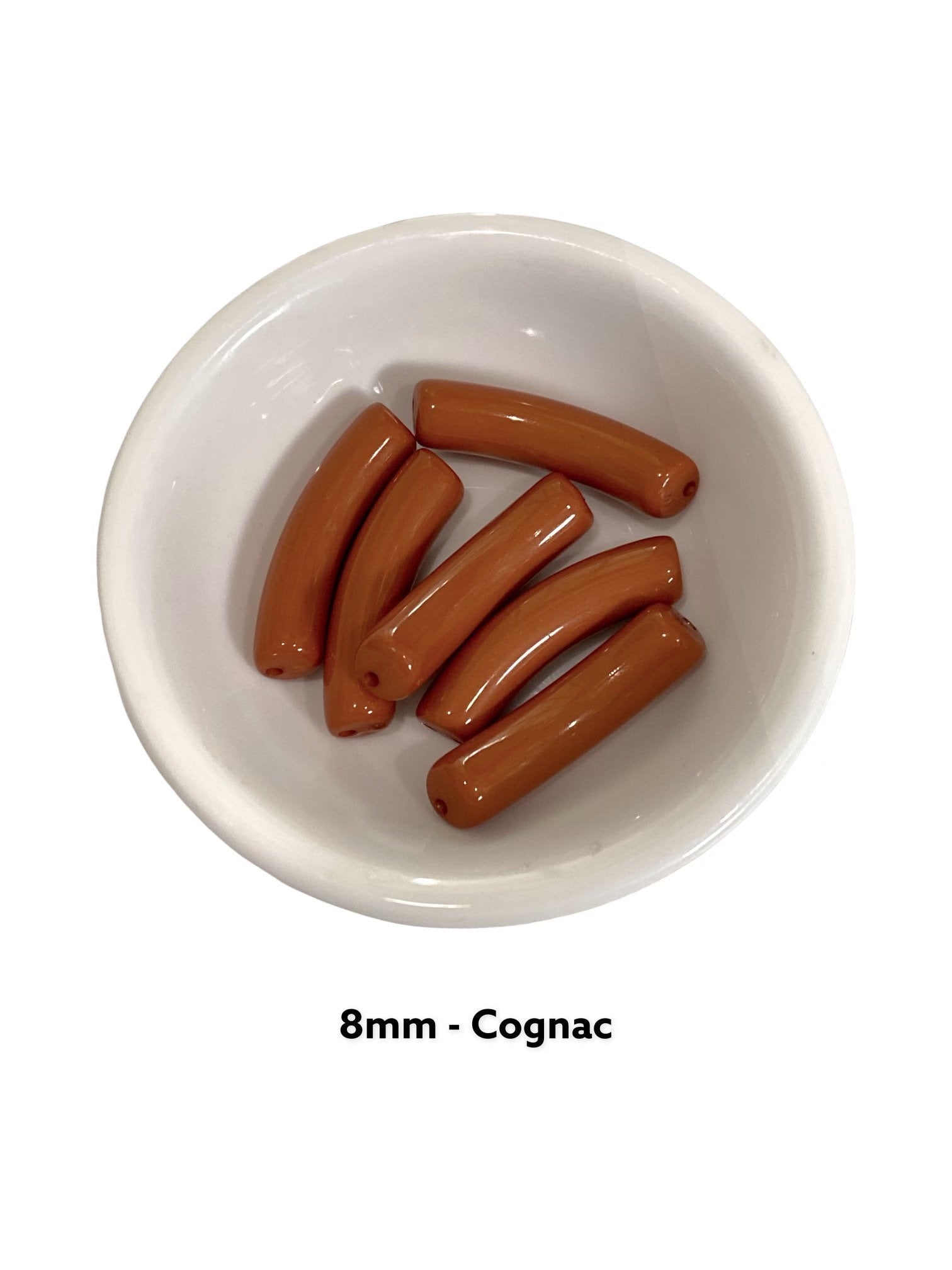 8mm Cognac Brown- Fall - Tam Brown - Acrylic Beads, 6mm (8mm) Curved Tube Beads, Resin ,Bracelet Bangle Tube Bead Waterproof Bangle