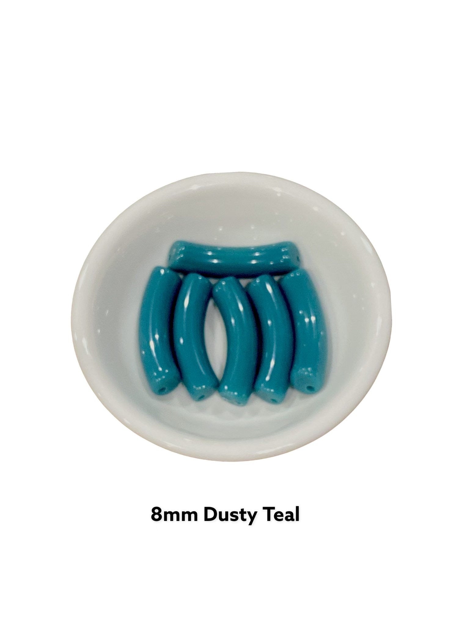 8mm Dusty Teal Tube beads- Winter Acrylic Beads, Curved Tube Beads, Resin , Bracelet Bangle Acrylic Tube Bead Waterproof Bangle 8mm, 6mm