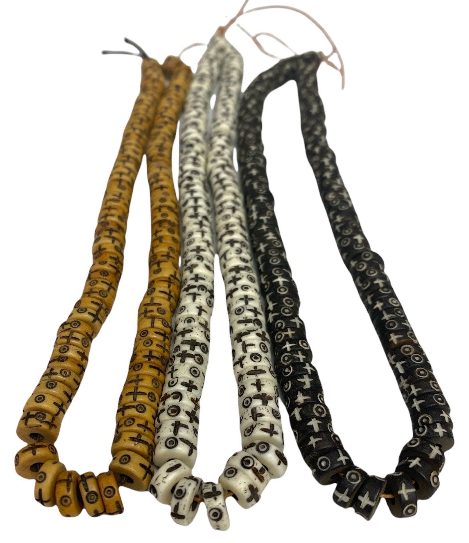 8mm Bone Beads Natural Carved White, Black, Brown Ox Bone beads Hand Etched, heishi saucer, bone beads, Rondelle beads Full strand 15.5"