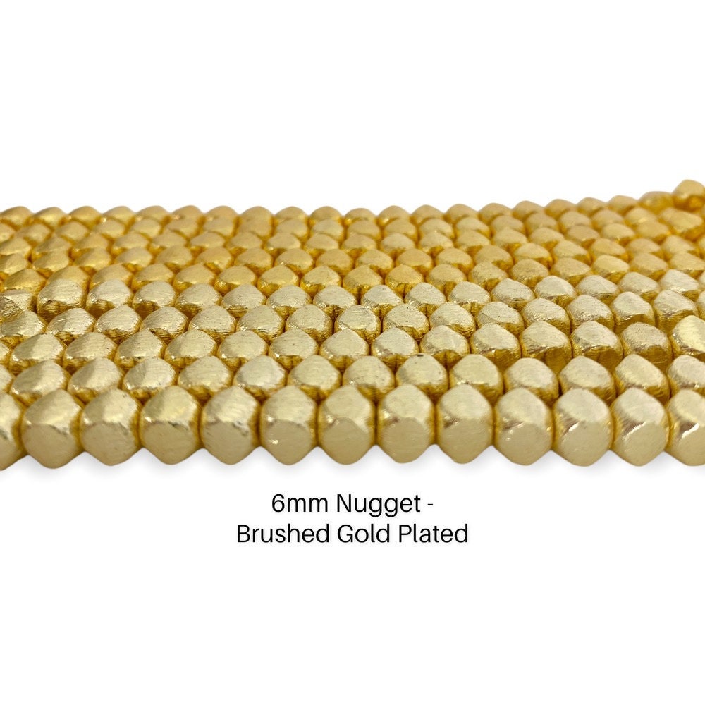 10mm Nugget Cube- Brushed Gold Nugget Bead -10mm Gold Disc Spacer Accent Bead, Gold Plated Square Nugget Spacer Accent Bead