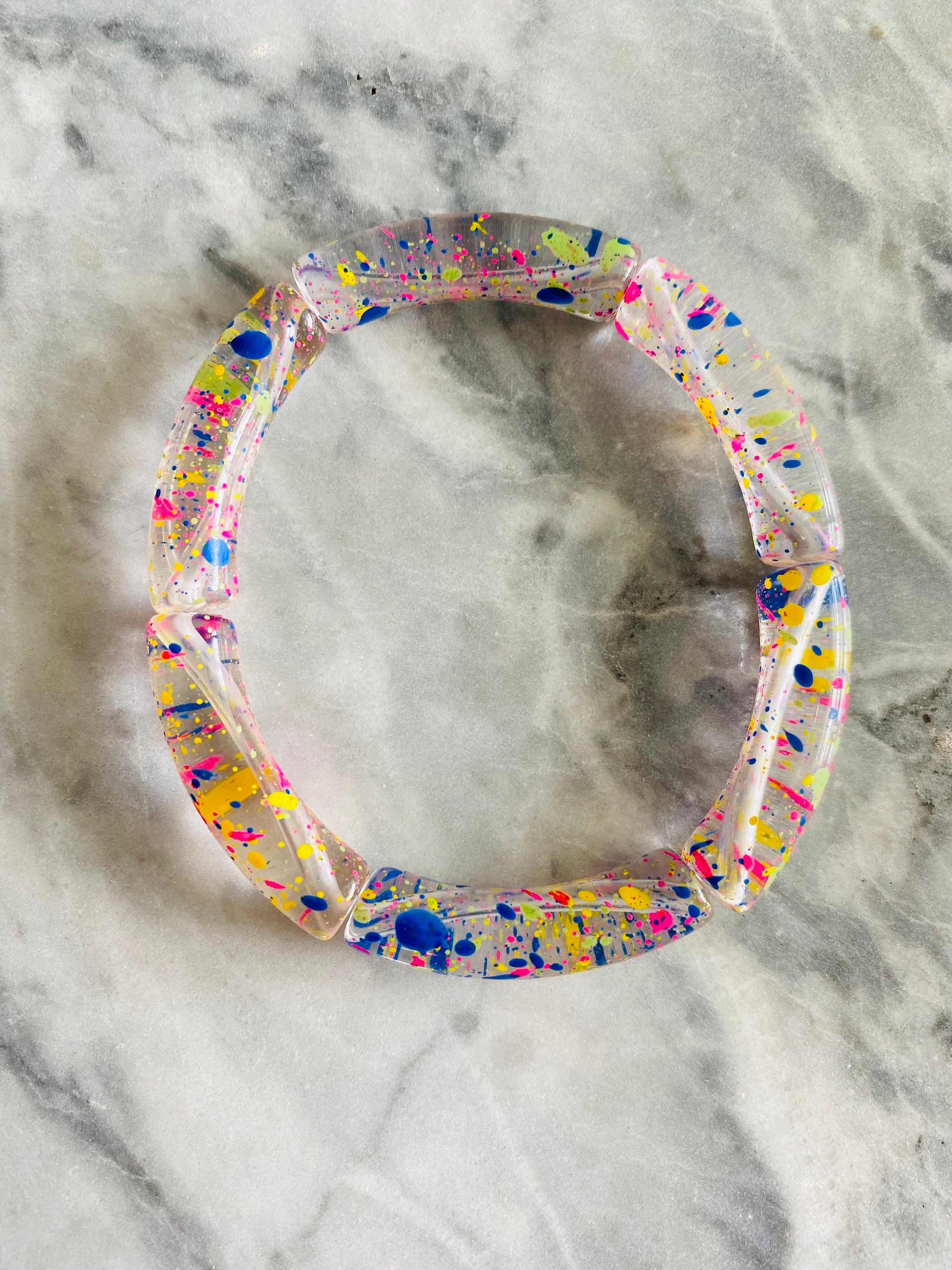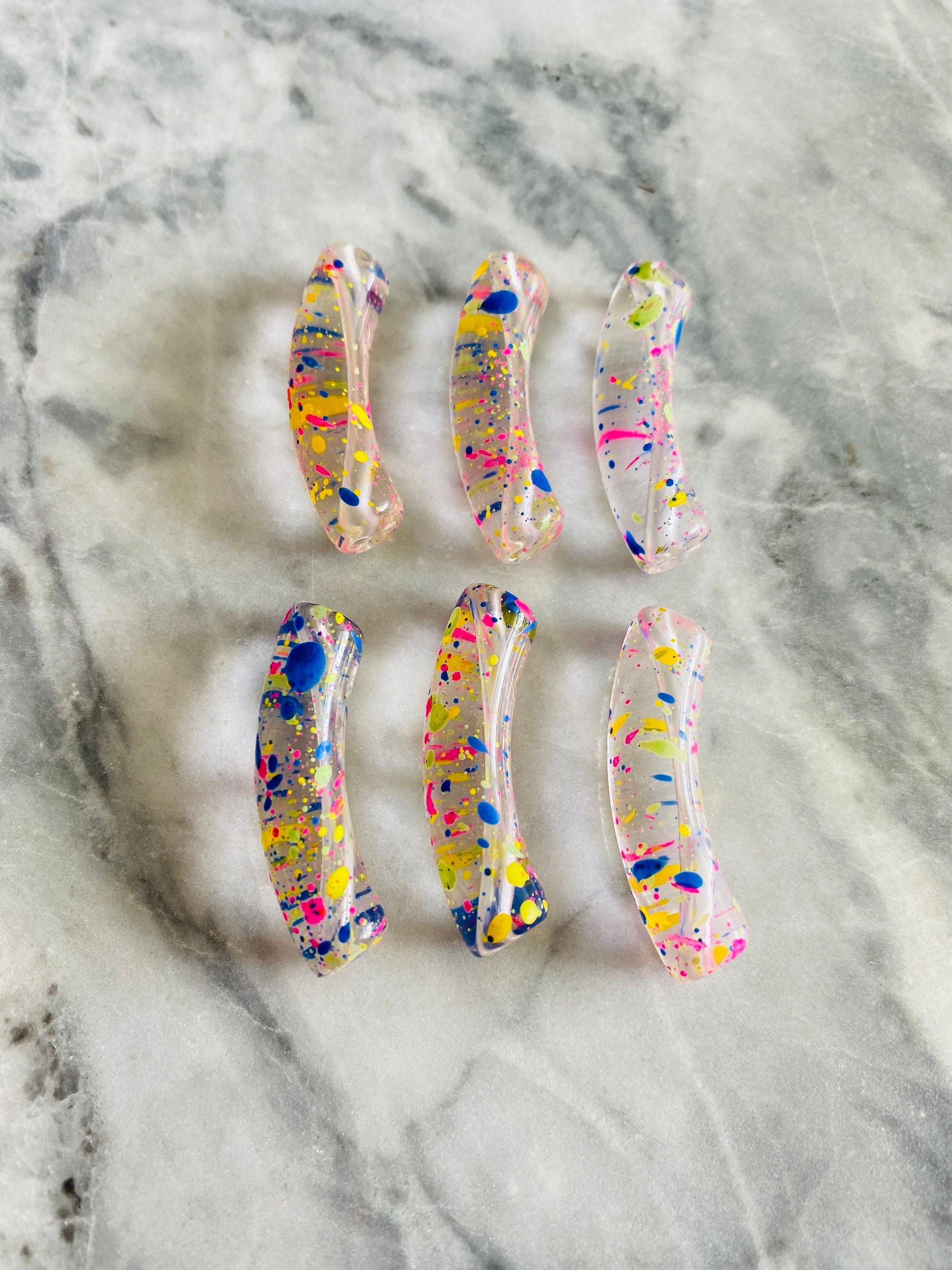 Multicolor Graffiti Paint Splatter Beads - 6mm (8mm) Rainbow Small Acrylic Tube Beads, Curved Tube Bead, Resin Lucite Bracelet Bangle