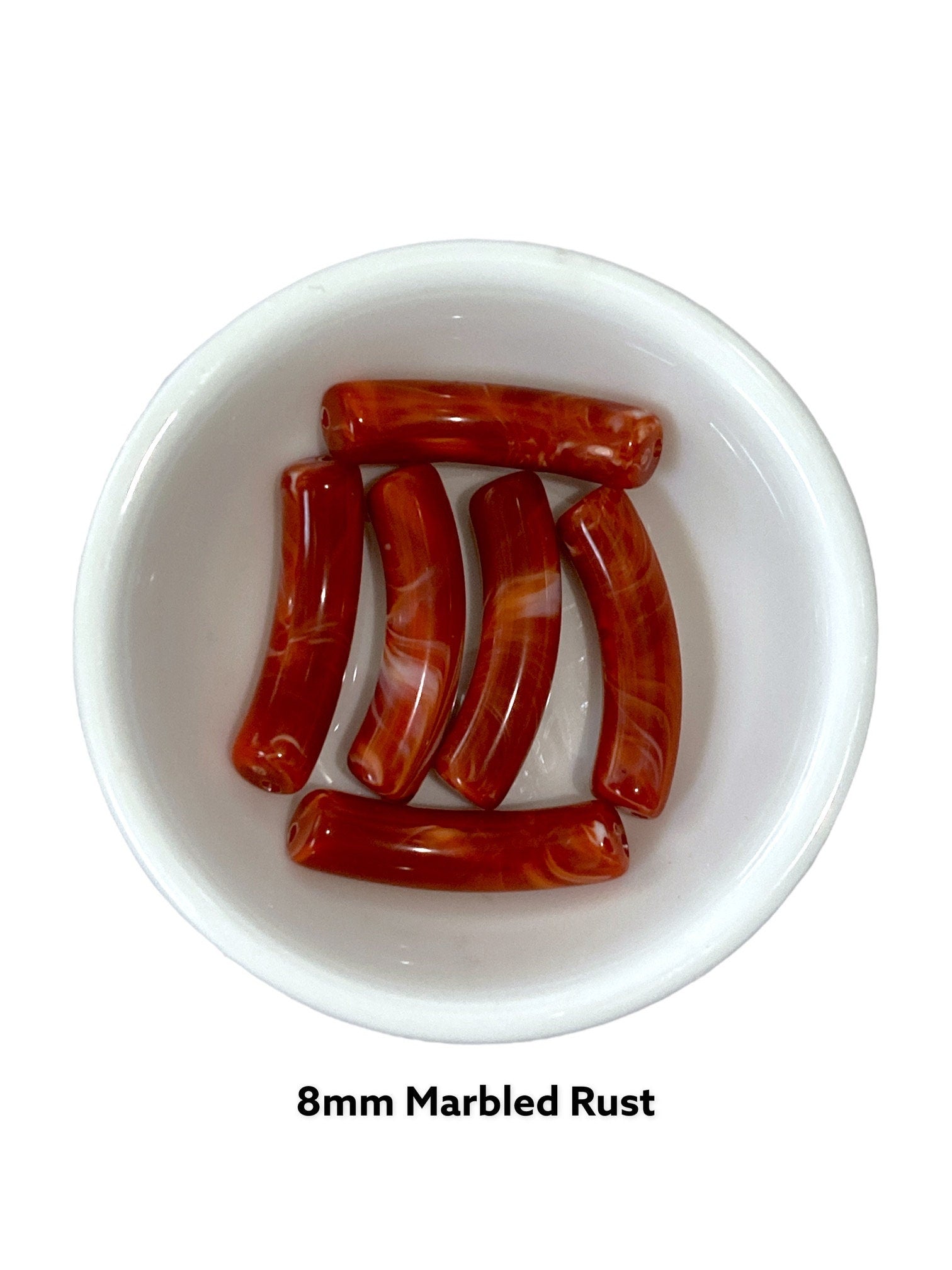 8mm- Marbled Rust Orange -Fall Acrylic Beads, Curved Tube Beads, Resin , Bracelet Bangle Tube Bead Rust Red Orange Bead