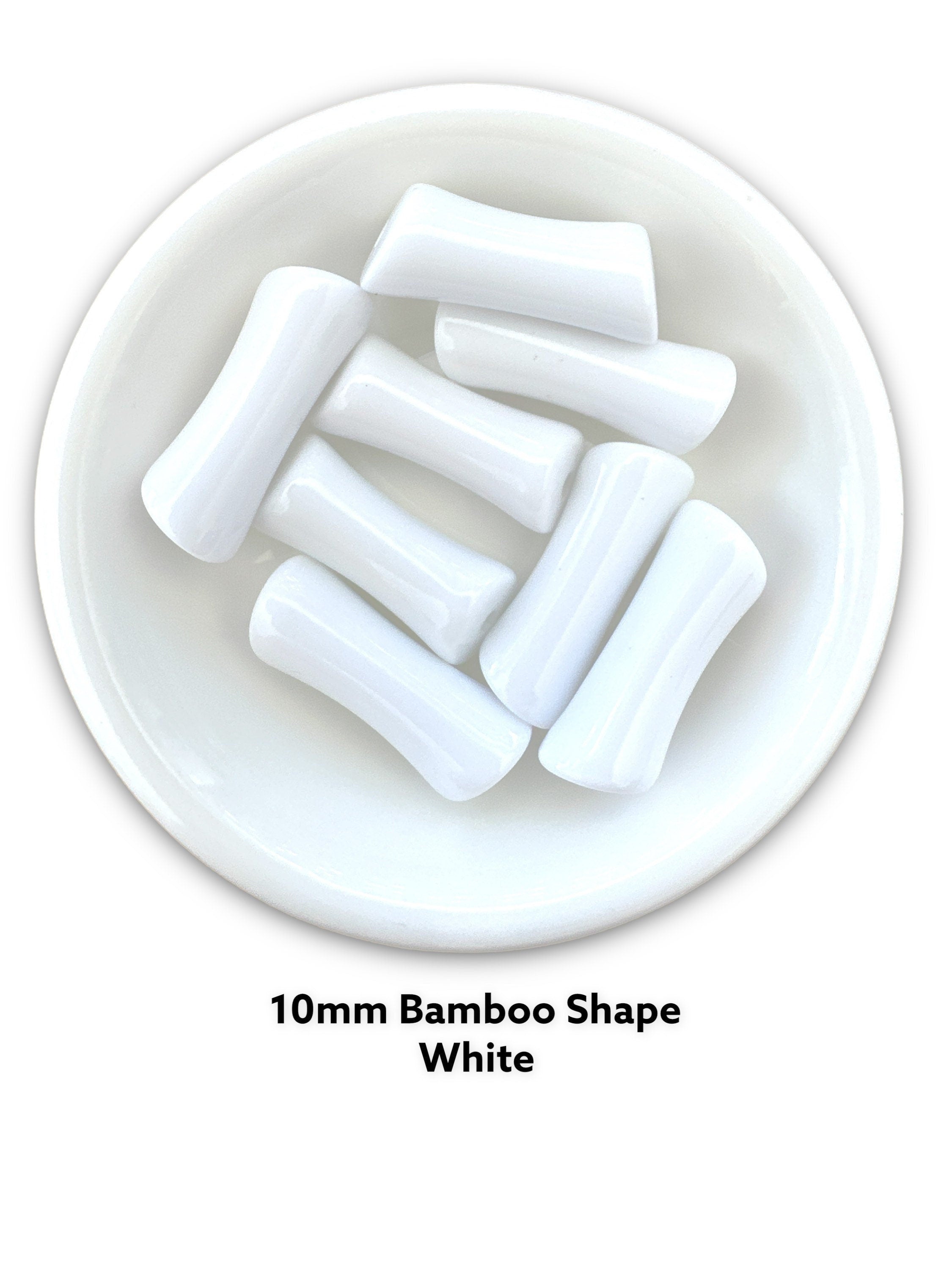 New Bamboo- 10mm White Bamboo New Shape - Acrylic Tube Beads Acrylic Bamboo Beads, Curved ,Bracelet Bangle Tube Holiday- Beads Only