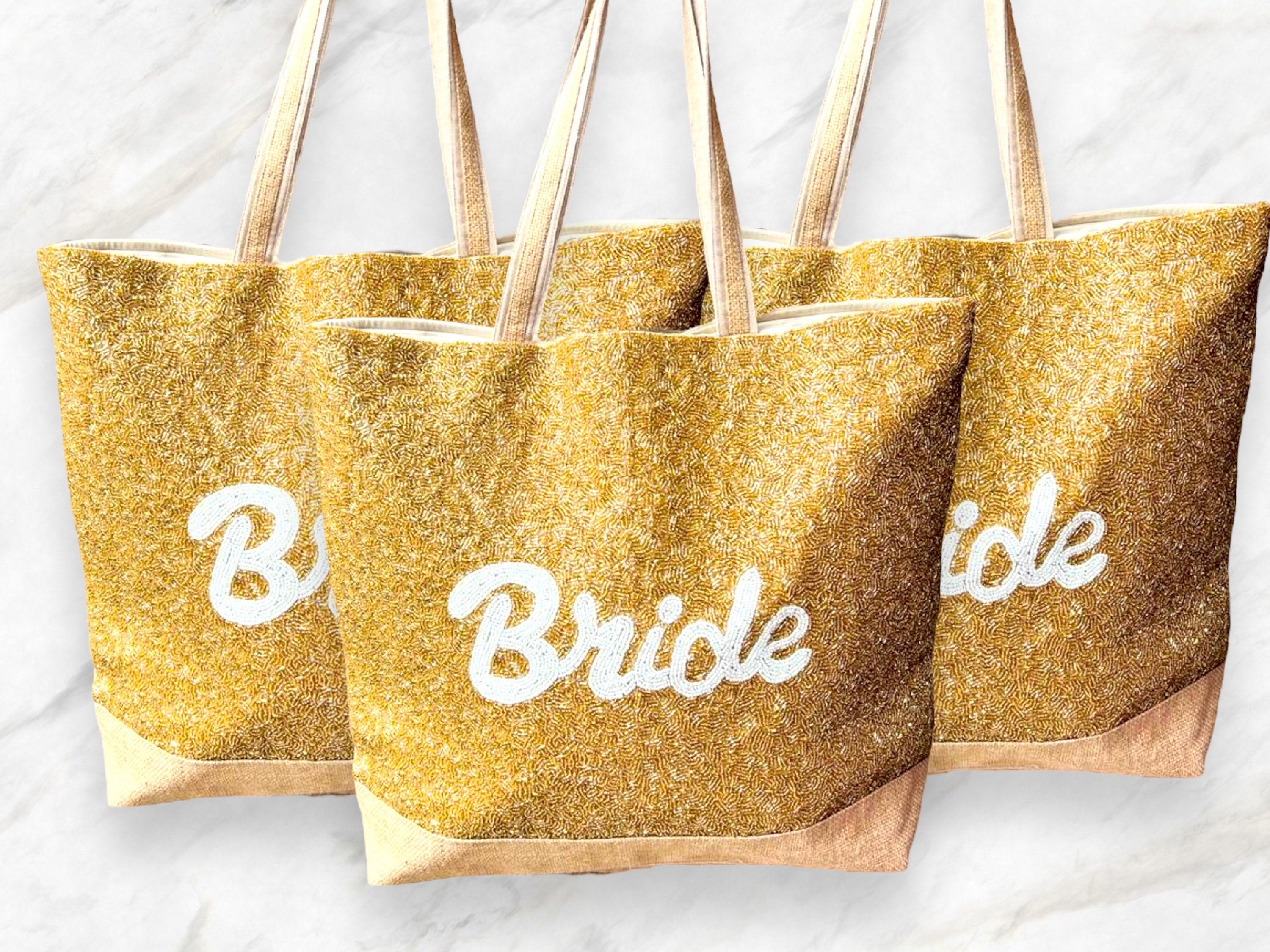 Bride Tote Bag- Bridal tote Travel Bag - Honeymoon gift - Beaded Bag - Handmade Seed Beads - Bridal Gift - Bridal Shower, MRS, Wedding