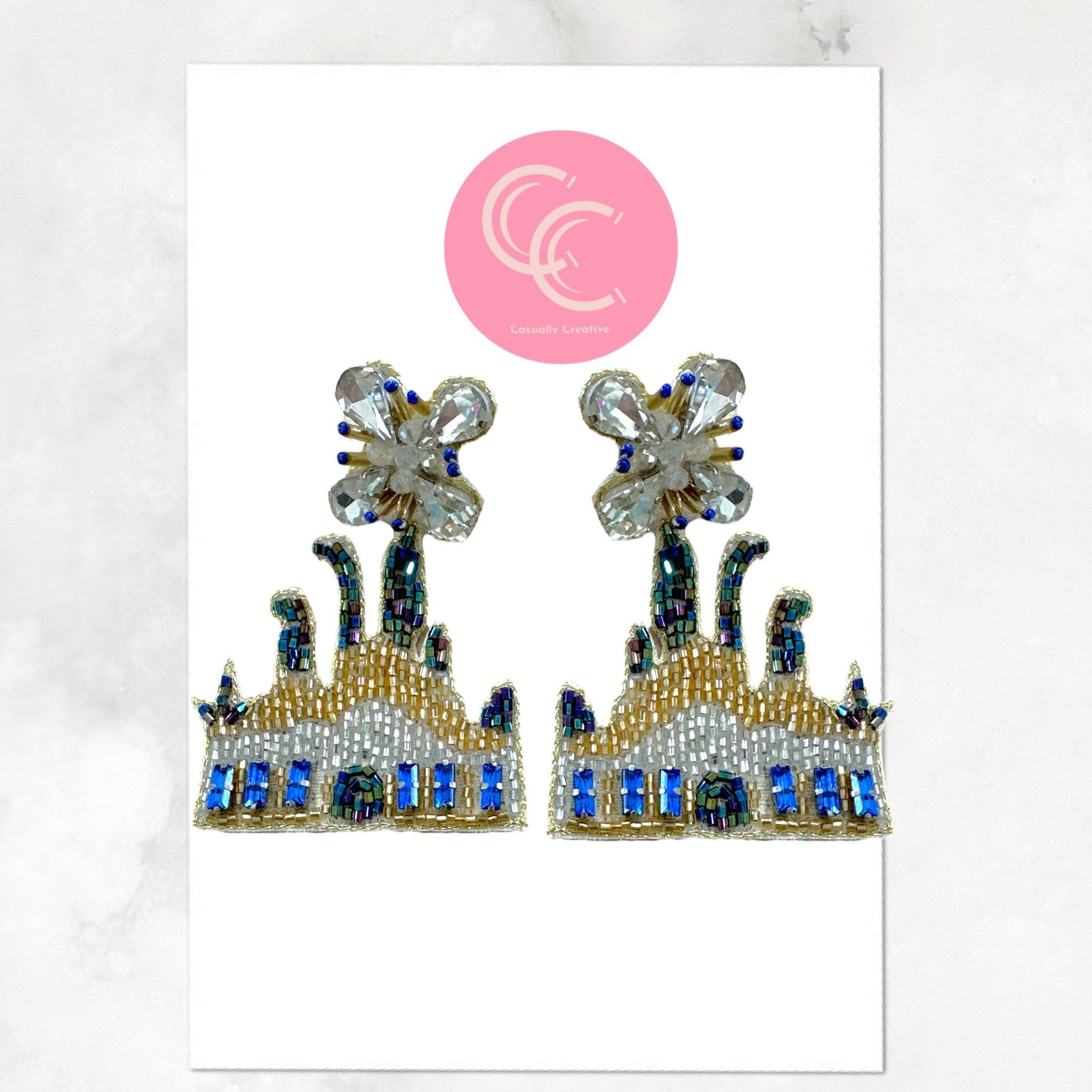 Castle Earrings - Princess Castle , Birthday Girl Gift- Beaded Earrings - Southern Jewelry- Theme Park Earrings- Swiftie