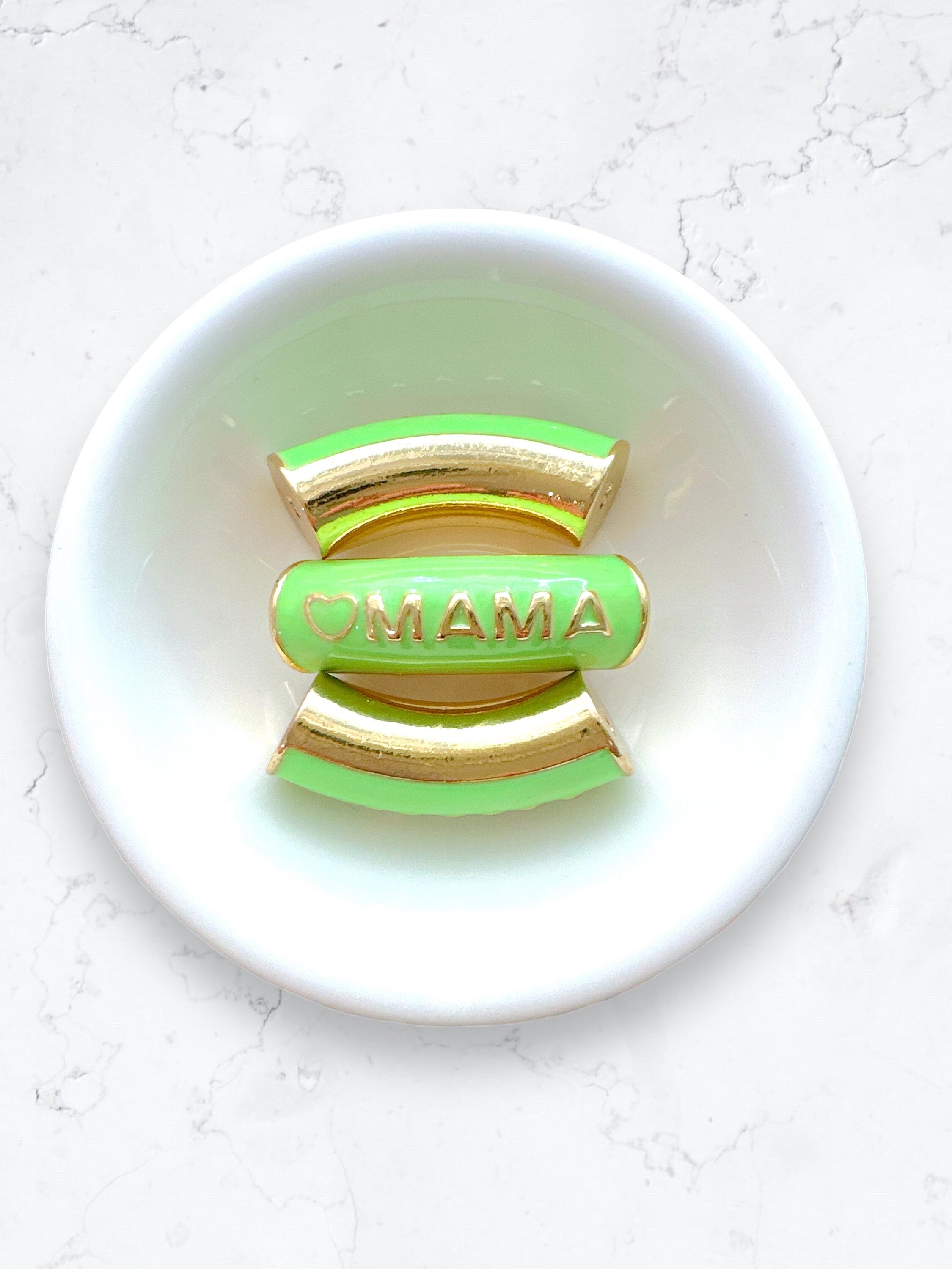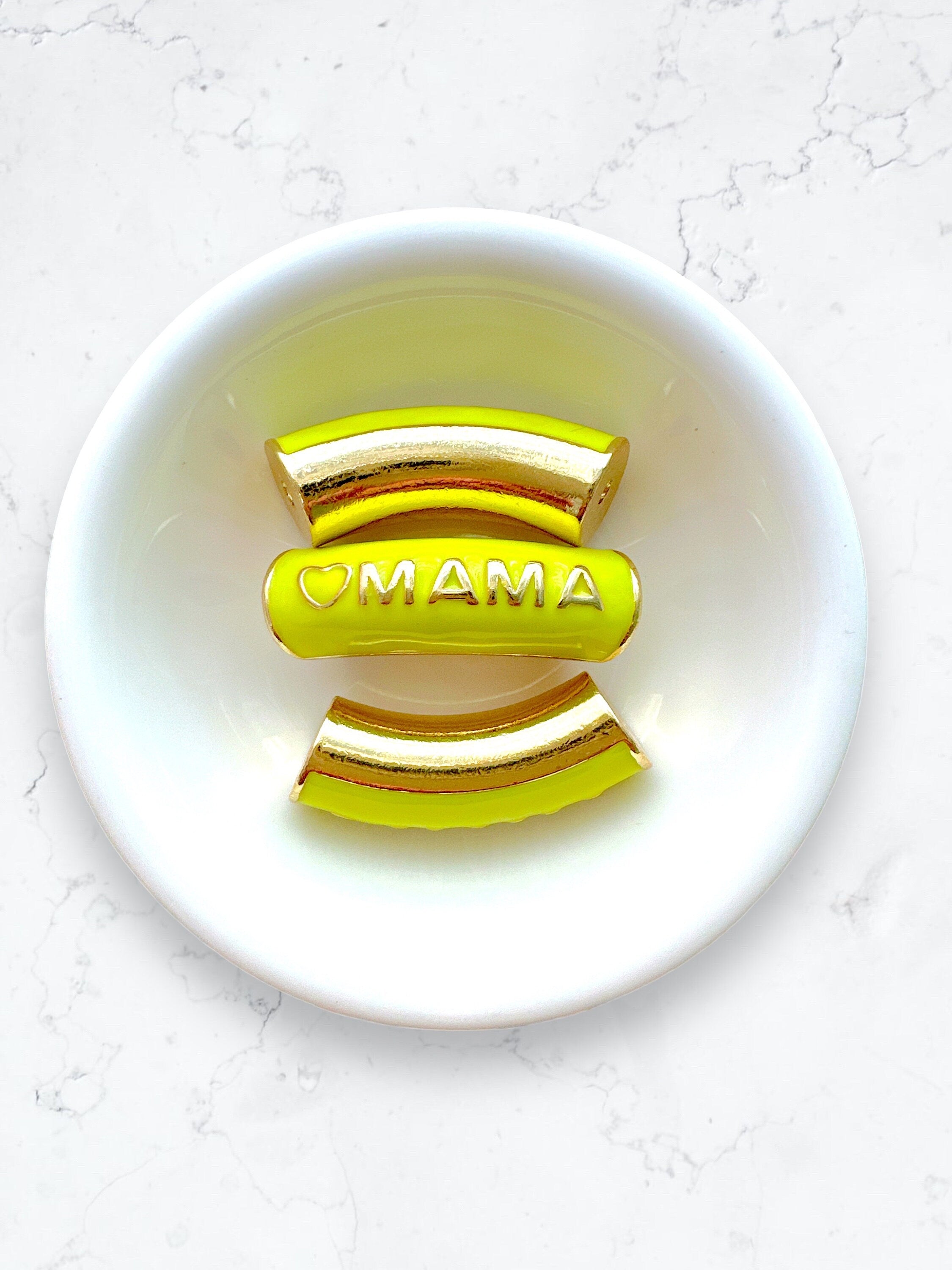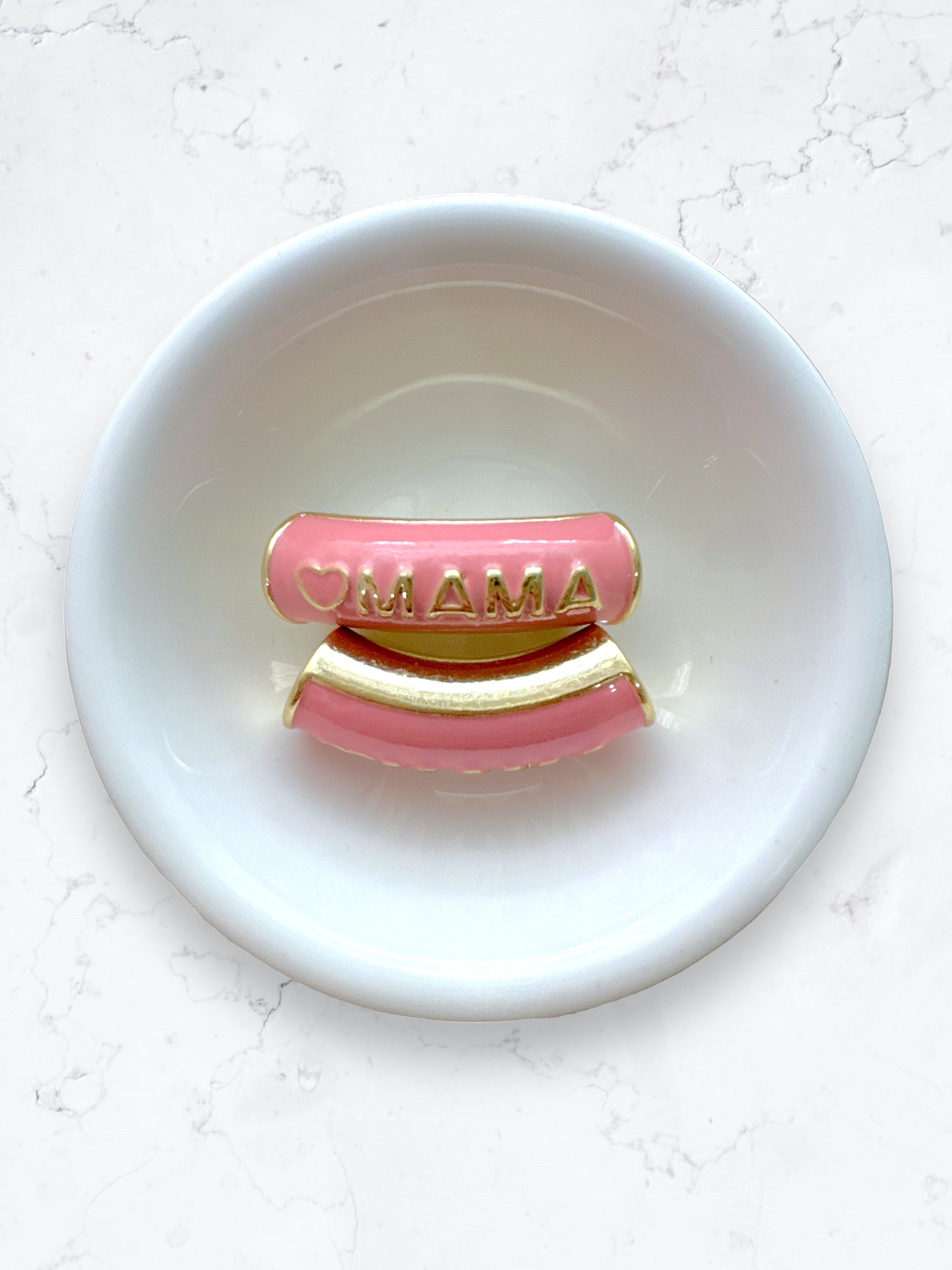 Mama Enamel Tube Bead- Rose Pink- 12mm Tube Enamel Beads, Curved Tube Beads, Resin 11 mm x 35mm, Bracelet Bangle Painted Metal TUBE BEAD